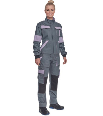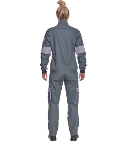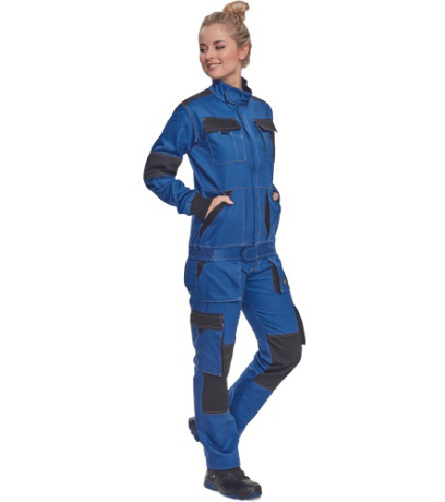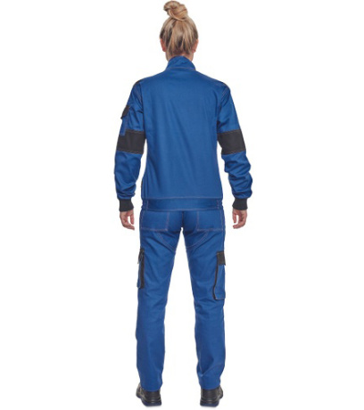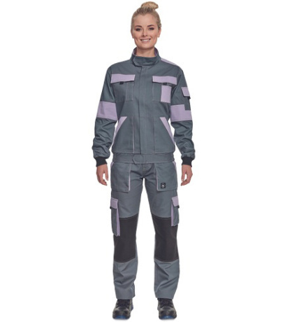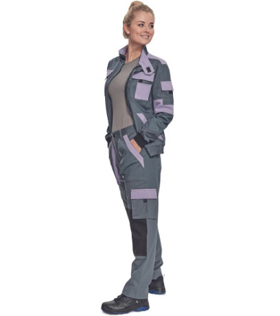 Opis: lady's light working jacket with zipper closure and placket cover; 2 front pockets, 2 chest double pockets with flaps; 1 small pocket on left sleeve; reinforcement in stressed parts of shoulders and elbows; elastic cuffs and bottom waist hem.