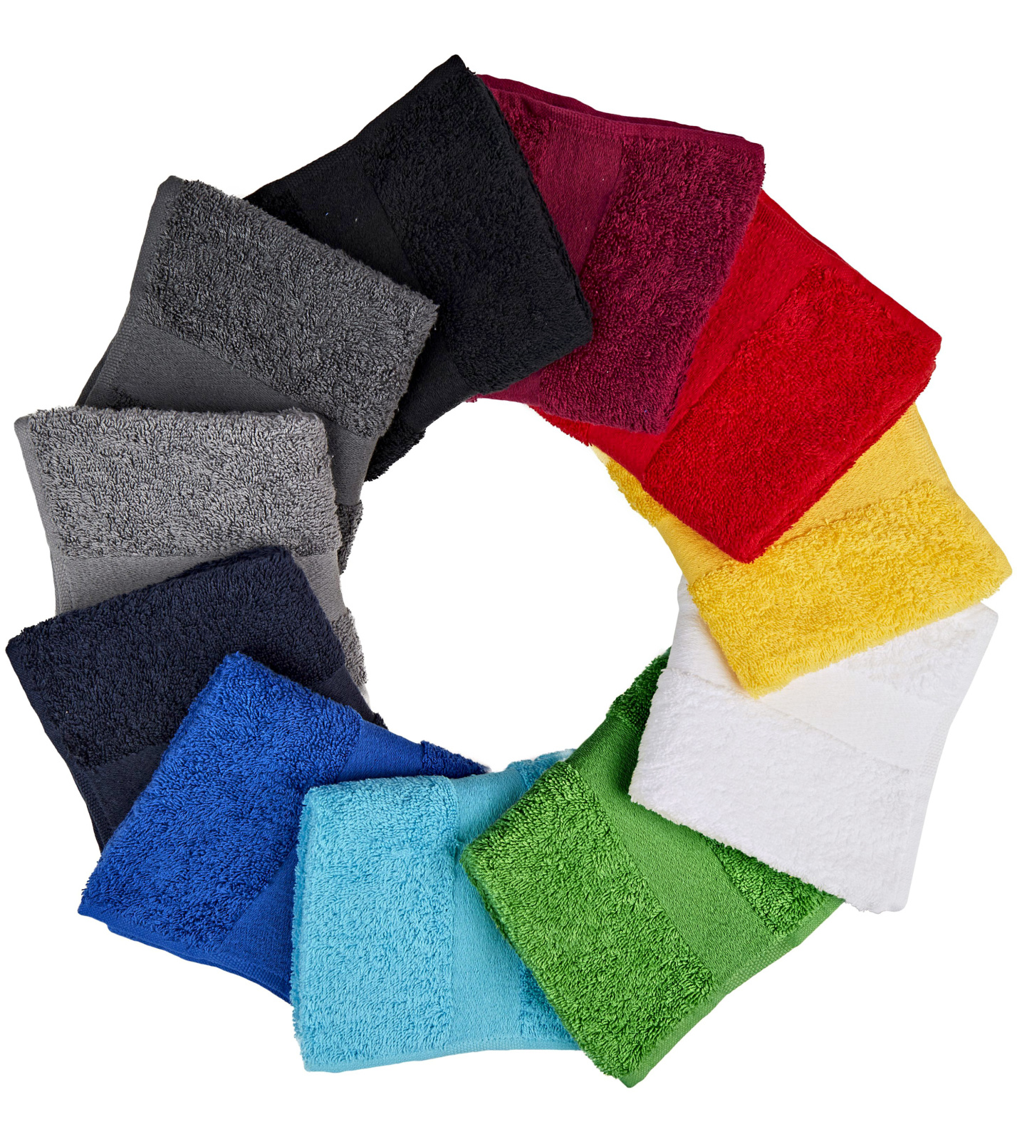 Dark Grey - Light Grey - Black - White - Burgundy - Turquoise - Cobalt Blue - Sunflower Yellow - Grass Green - Red -