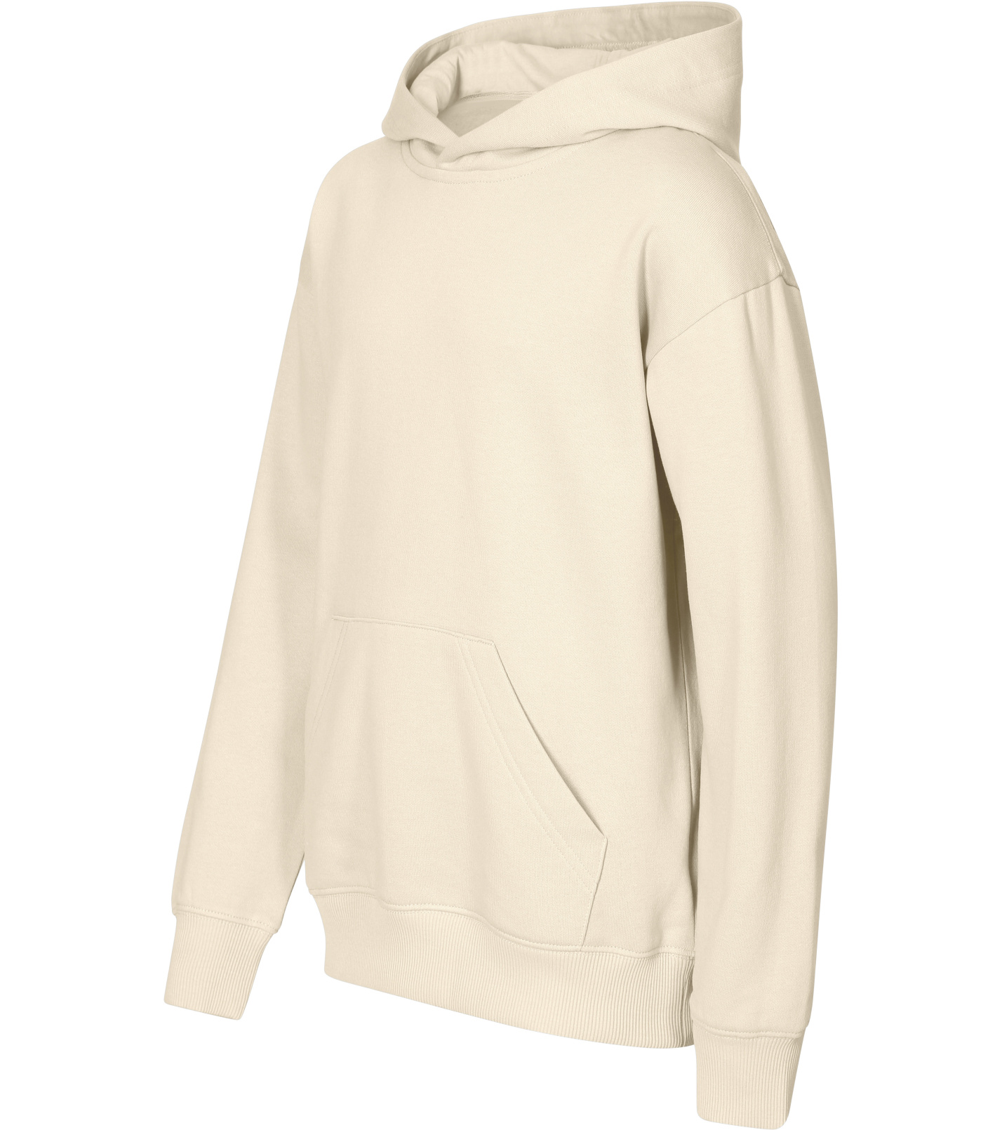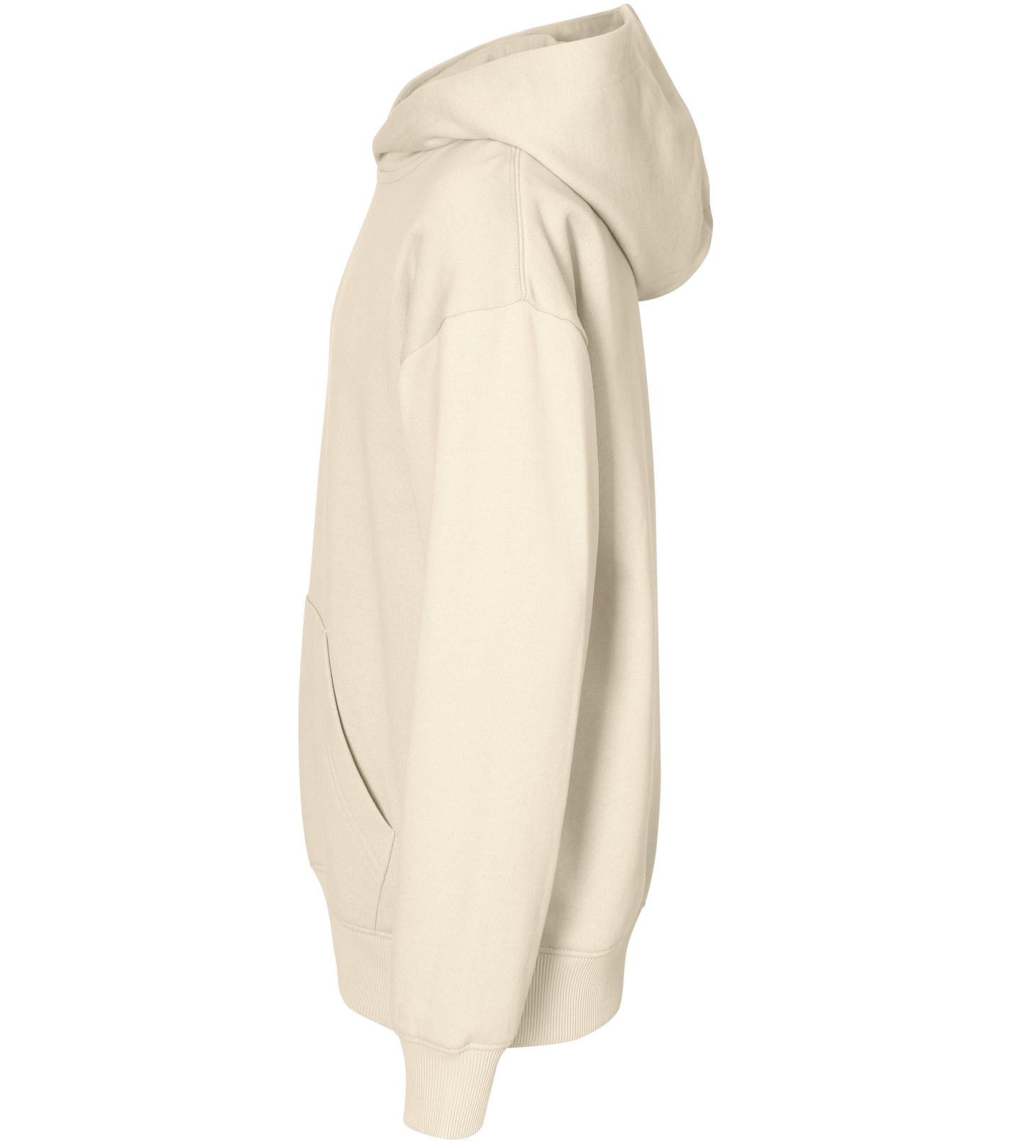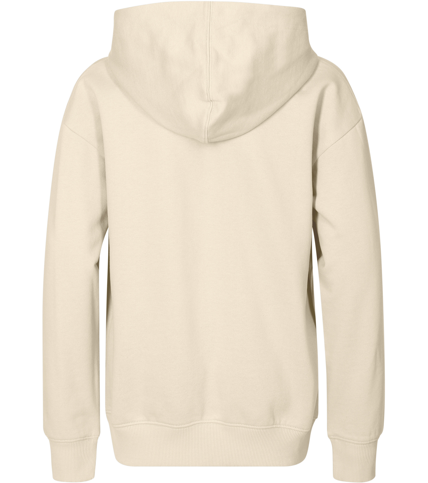 Z boku dekoltu znajduje się metka z neutralnym rozmiarem, a wnętrze dekoltu wykończone jest taśmą. Rękawy są głęboko wycięte, z kieszenią typu kangur z przodu. Dół i mankiety rękawów wykonane są z dzianiny ściągaczowej 2:2 z dodatkiem 5% elastanu. Wnętrze bluzy jest delikatnie szczotkowane dla większego komfortu.