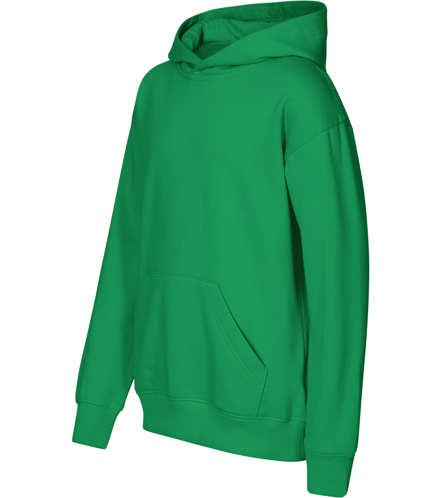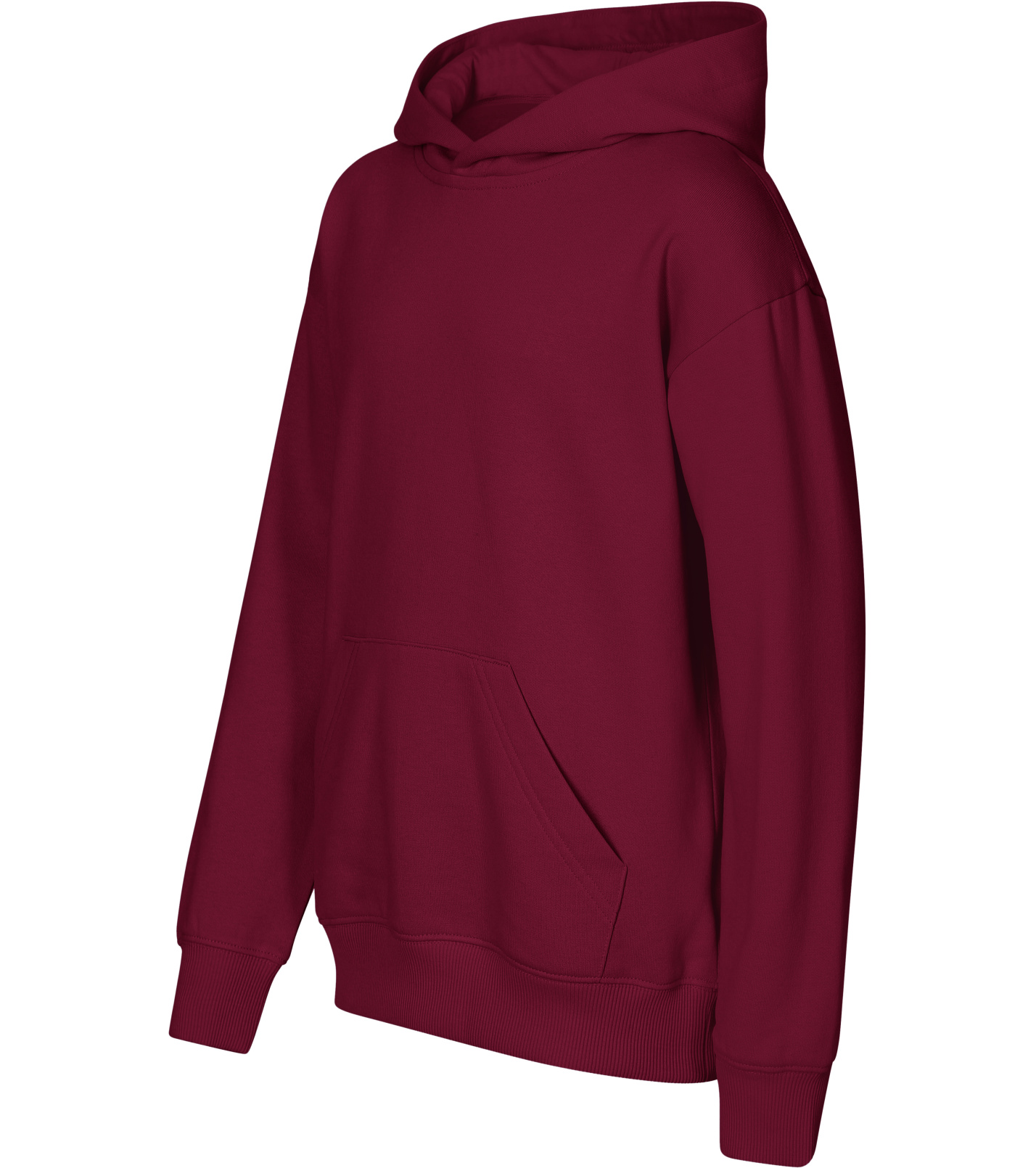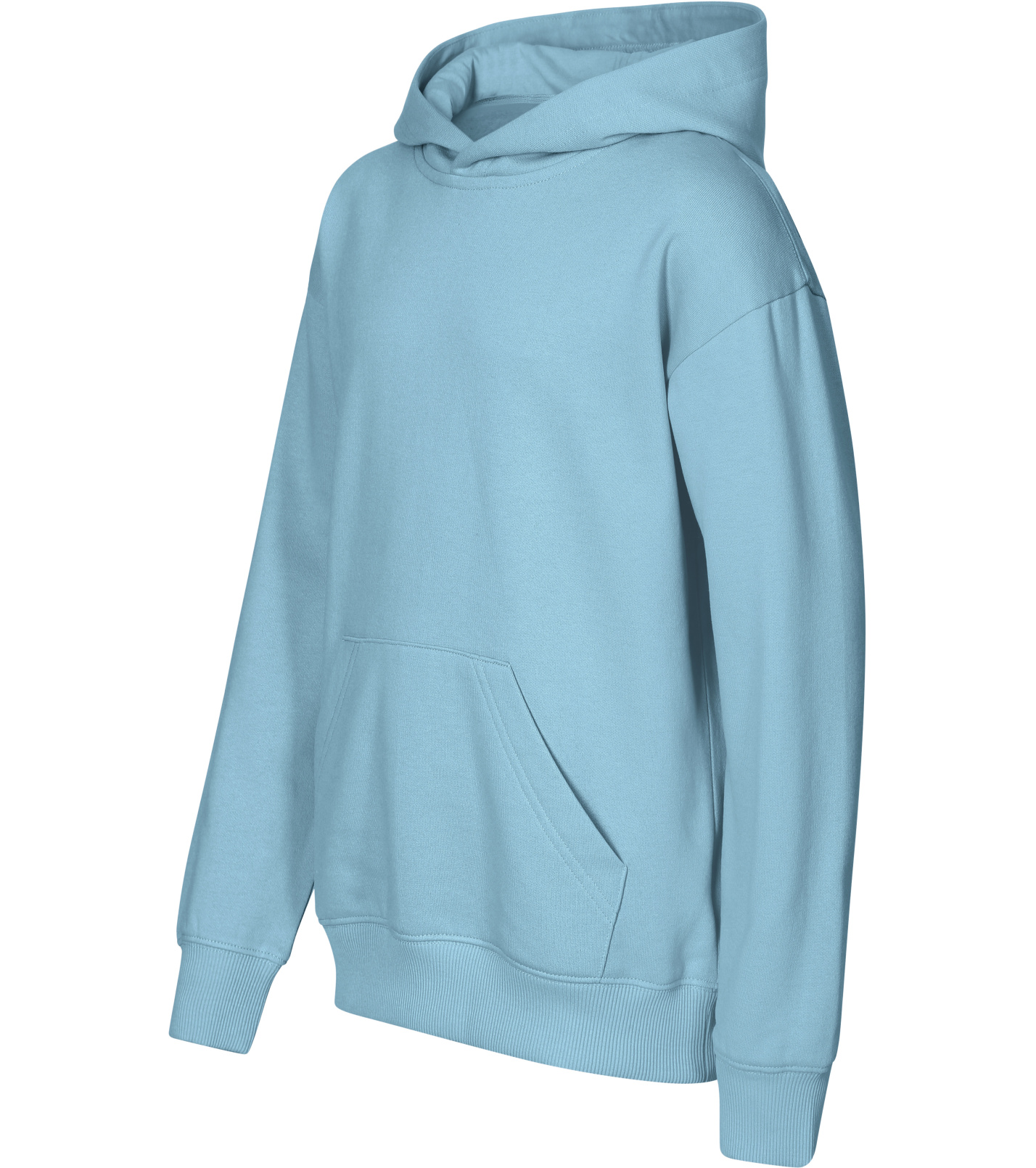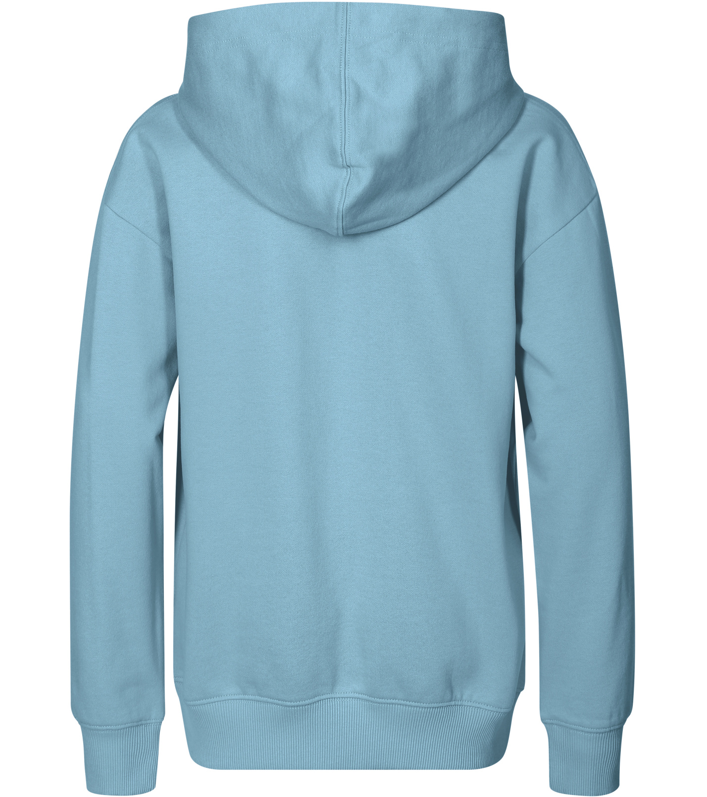 Z boku dekoltu znajduje się metka z neutralnym rozmiarem, a wnętrze dekoltu wykończone jest taśmą. Rękawy są głęboko wycięte, z kieszenią typu kangur z przodu. Dół i mankiety rękawów wykonane są z dzianiny ściągaczowej 2:2 z dodatkiem 5% elastanu. Wnętrze bluzy jest delikatnie szczotkowane dla większego komfortu.