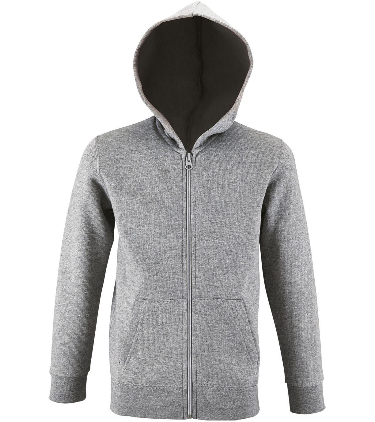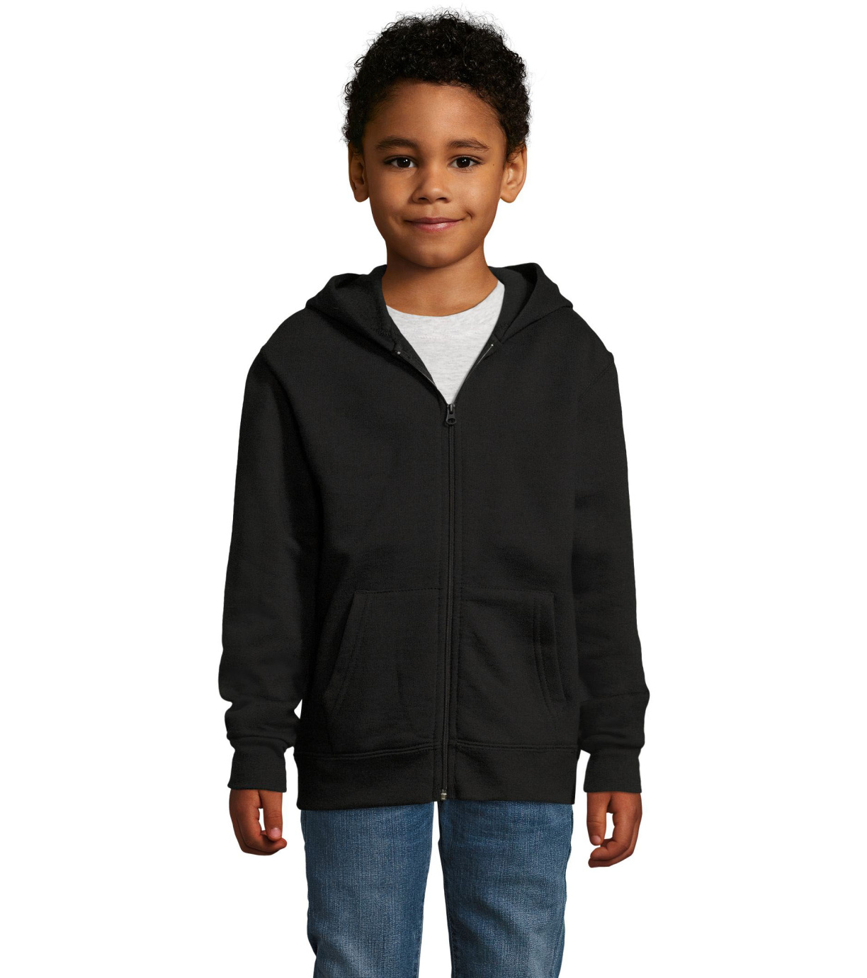 Rozpinana bluza dziecięca. Posiada dolny ściągacz i mankiety wykonane z solidnej dzianiny. Z przodu 2 kieszenie typu kangur.