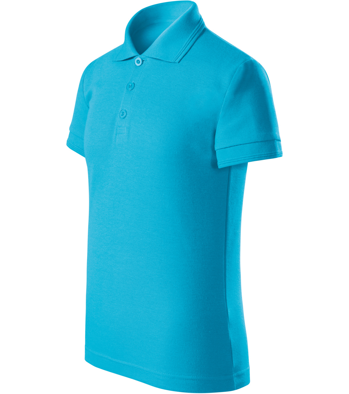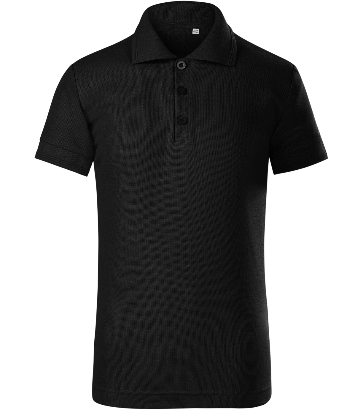 Koszulka polo dziecięca, bez metki - gotowa do rebrandingu, krój ze szwami bocznymi, kołnierzyk i wykończenie rękawów podwójnym wytłoczonym paskiem z dzianiny ściągaczowej 1:1, wąska plisa z 3 guzikami w kolorze materiału, wewnętrzny dekolt wykończony taśmą z materiału wierzchniego, metka z neutralnym rozmiarem z boku dekoltu, szwy na ramionach wzmocnione taśmą.