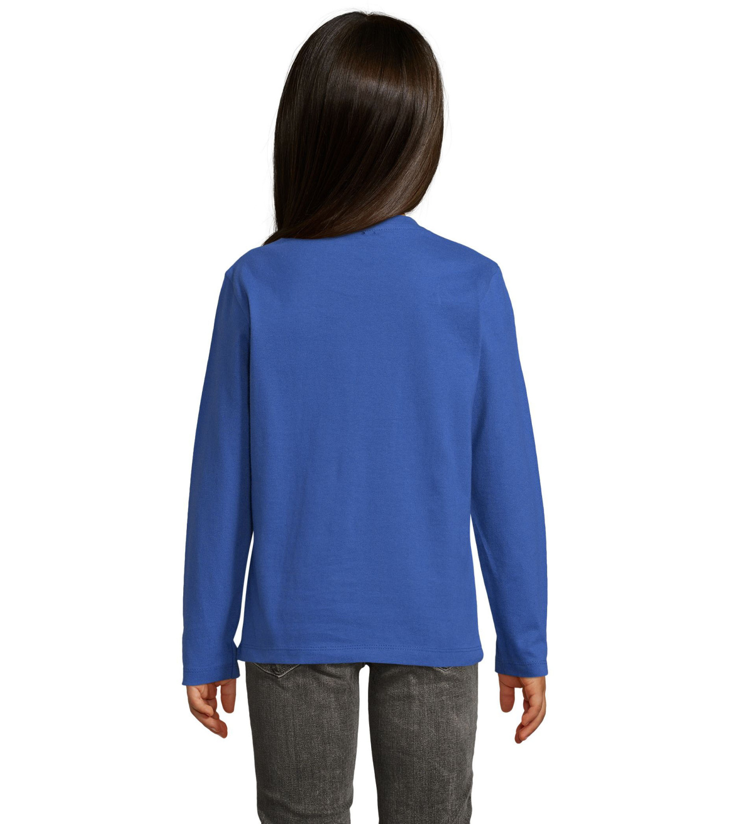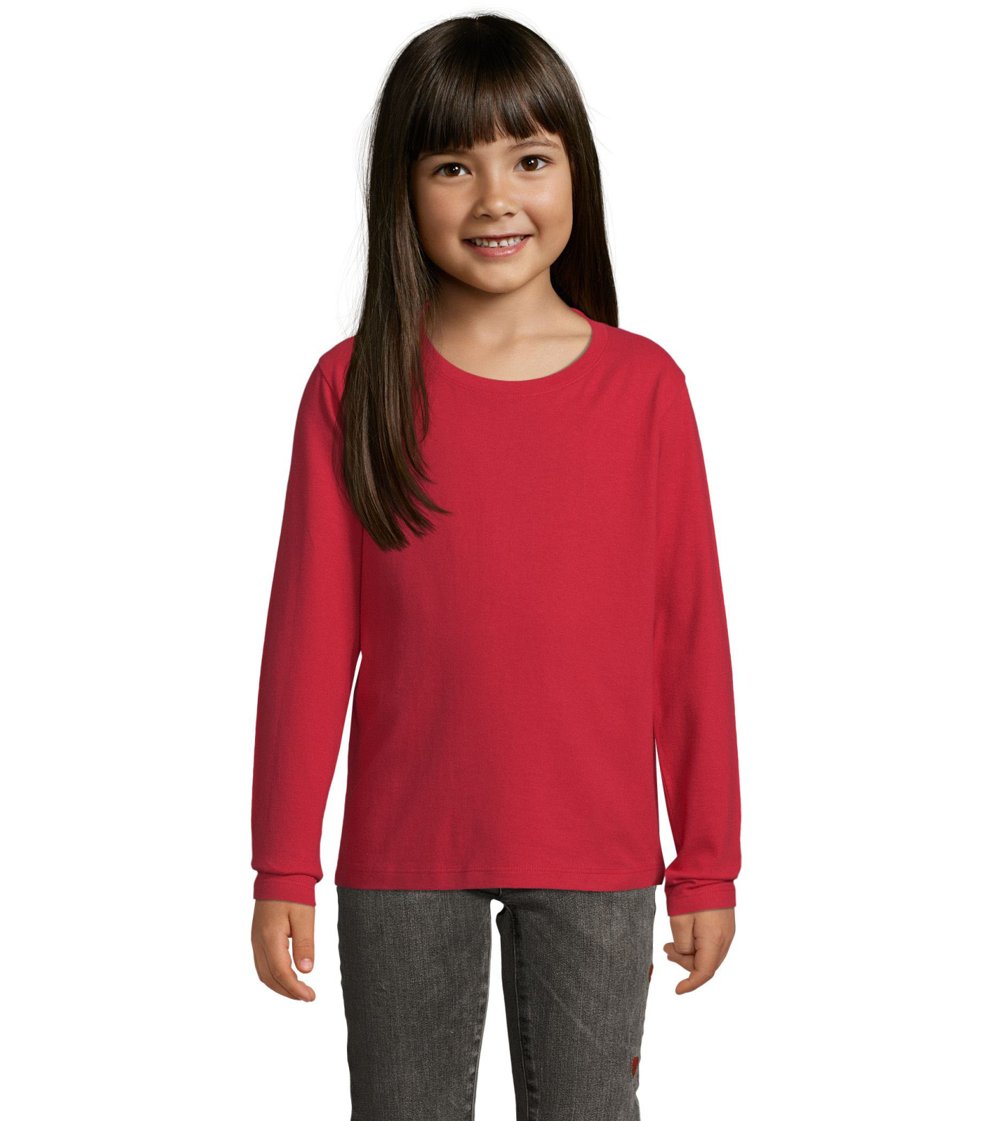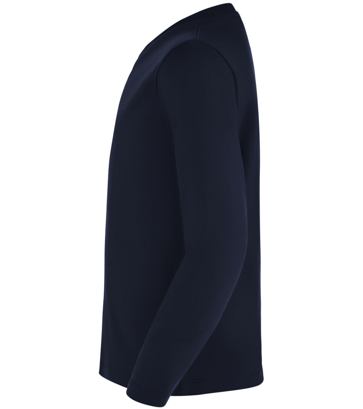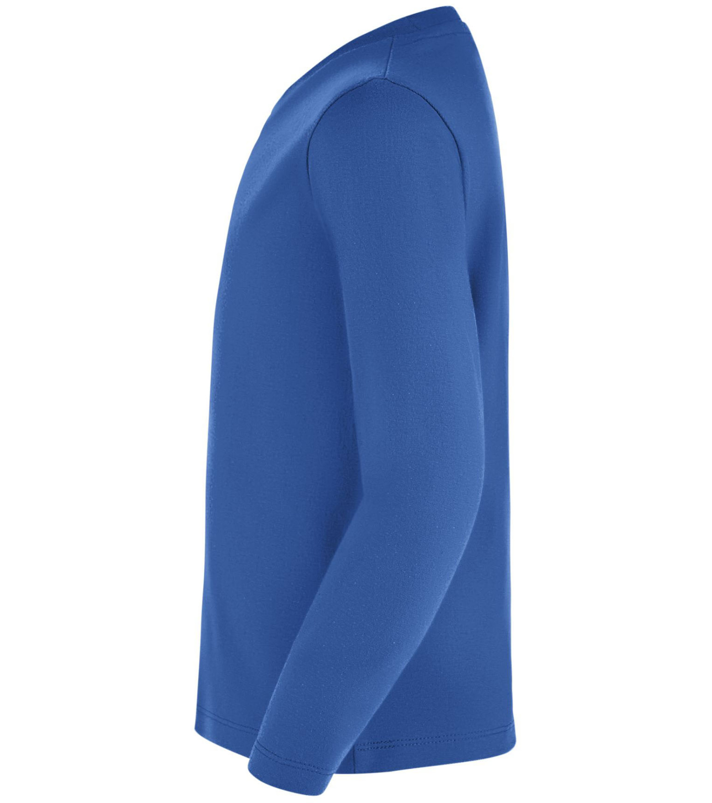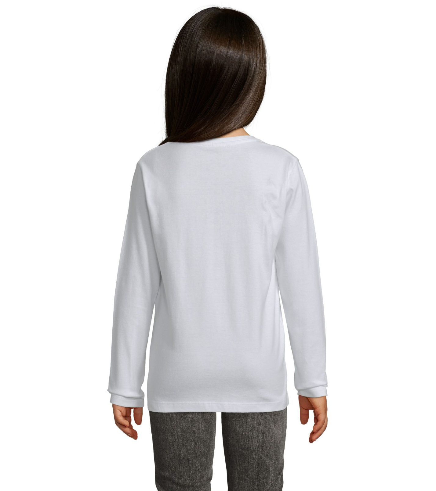 T-shirt dziecięcy z długim rękawem, dopasowanym krojem ze szwami bocznymi, okrągłym dekoltem i kołnierzykiem z elastanu.