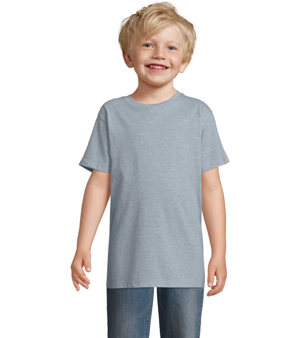 Koszulka dziecięca z krótkim rękawem i okrągłym dekoltem. Wykonana jest z bardzo przyjemnej czesanej bawełny. Dekolt wykończony elastyczną lamówką.