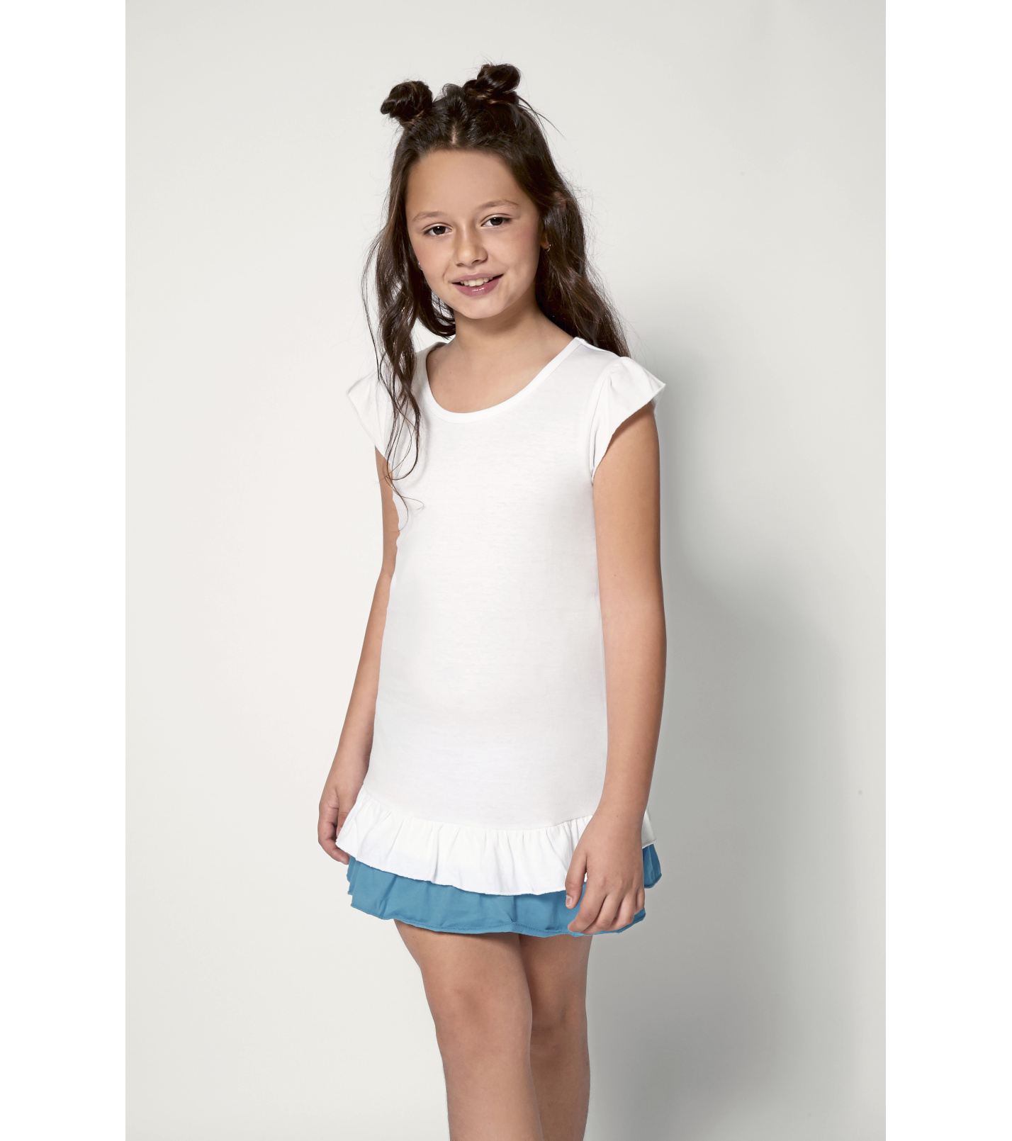 T-shirt z bawełny półczesanejPodwójna, dwukolorowa falbana u dołu sukienki