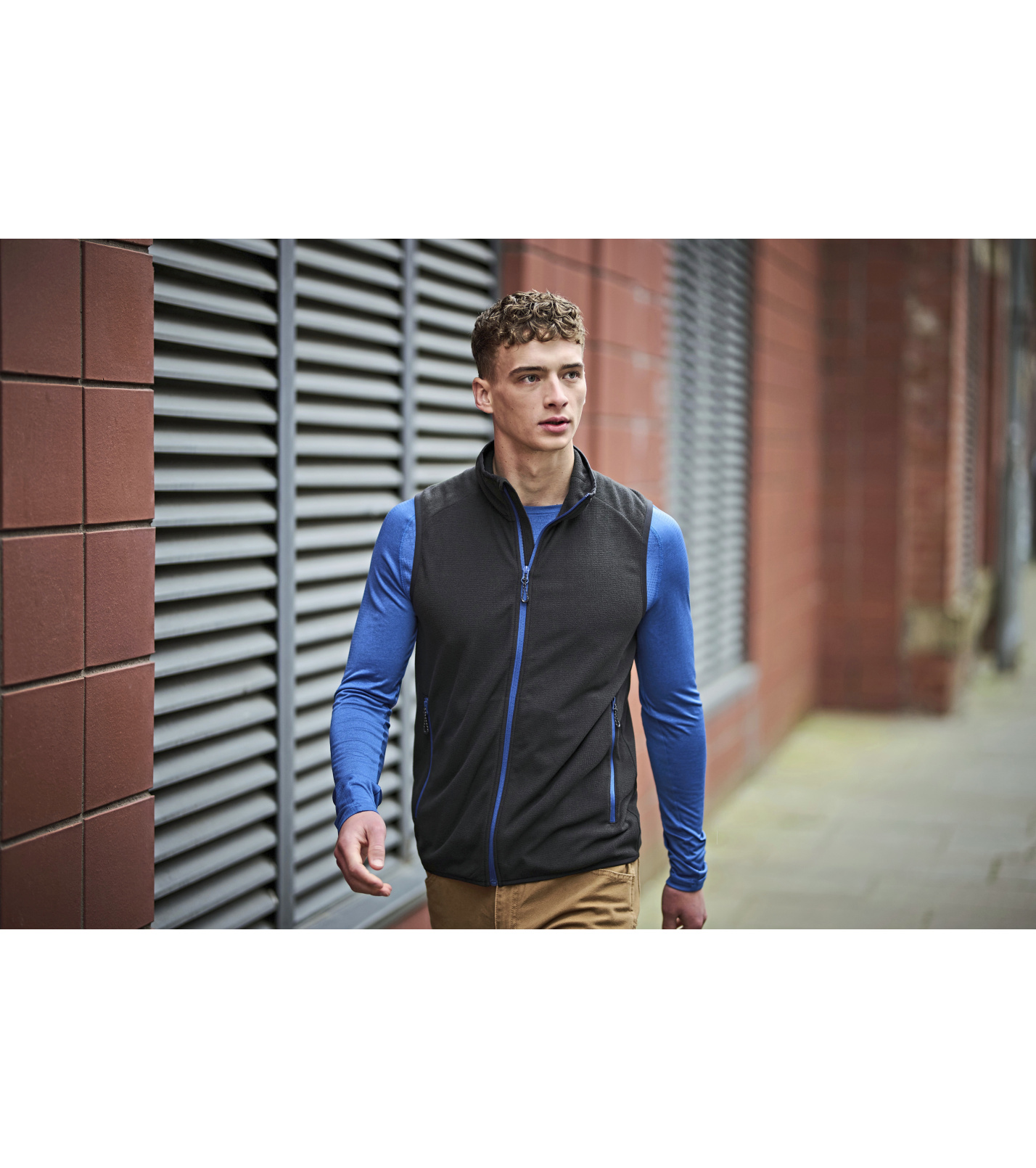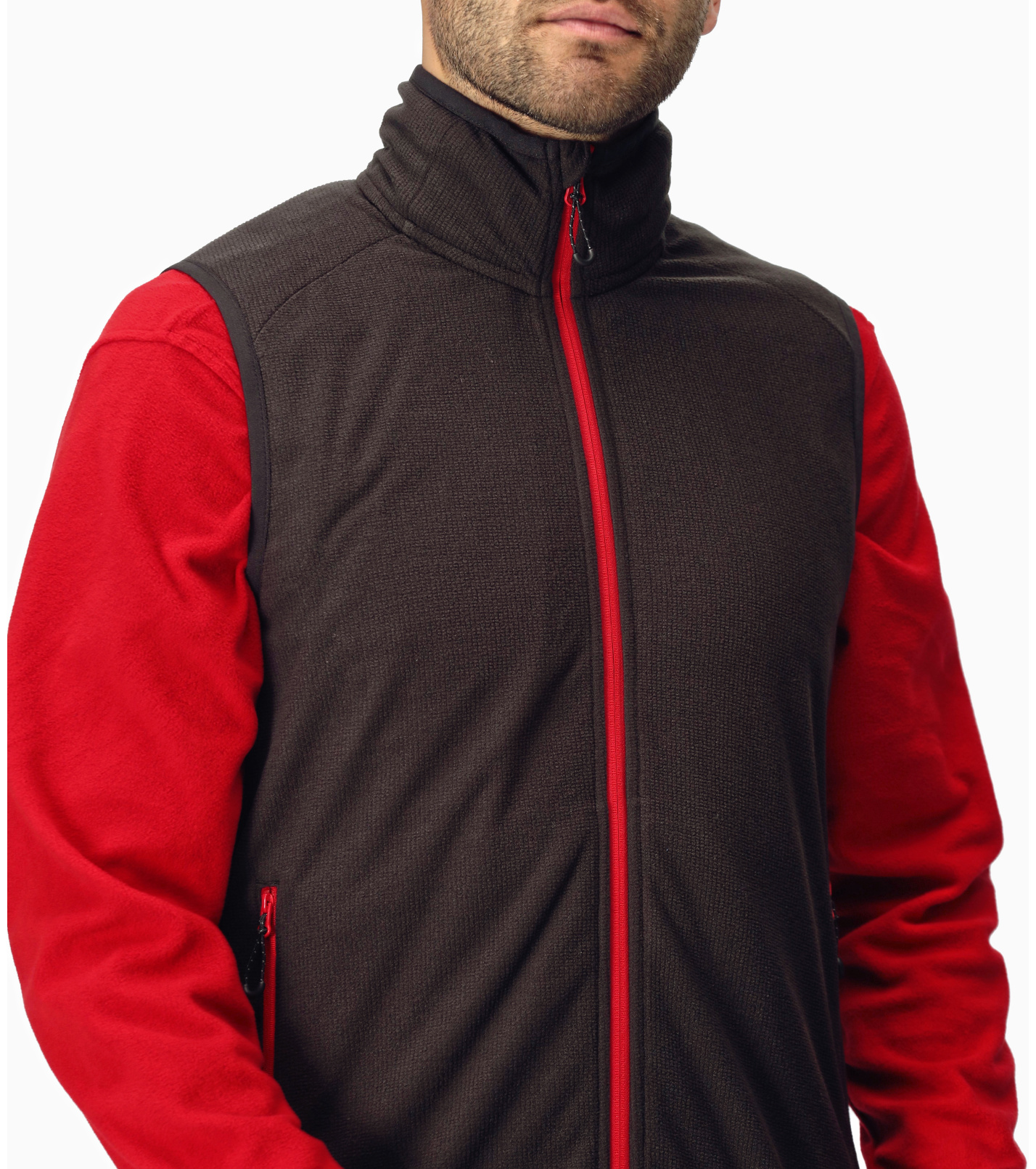 100% siateczkowy mikropolar poliestrowy wykonany w 30% z materiałów pochodzących z recyklinguElastyczna lamówka przy wycięciu pach, na dole i na kołnierzu