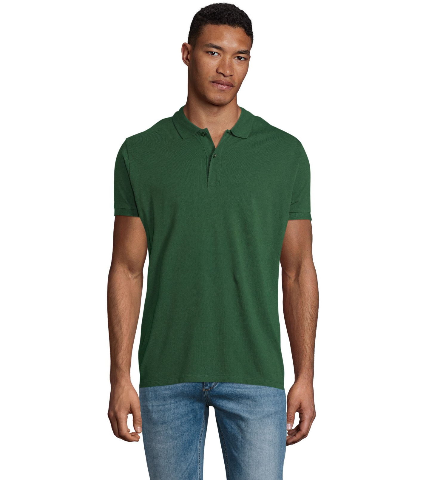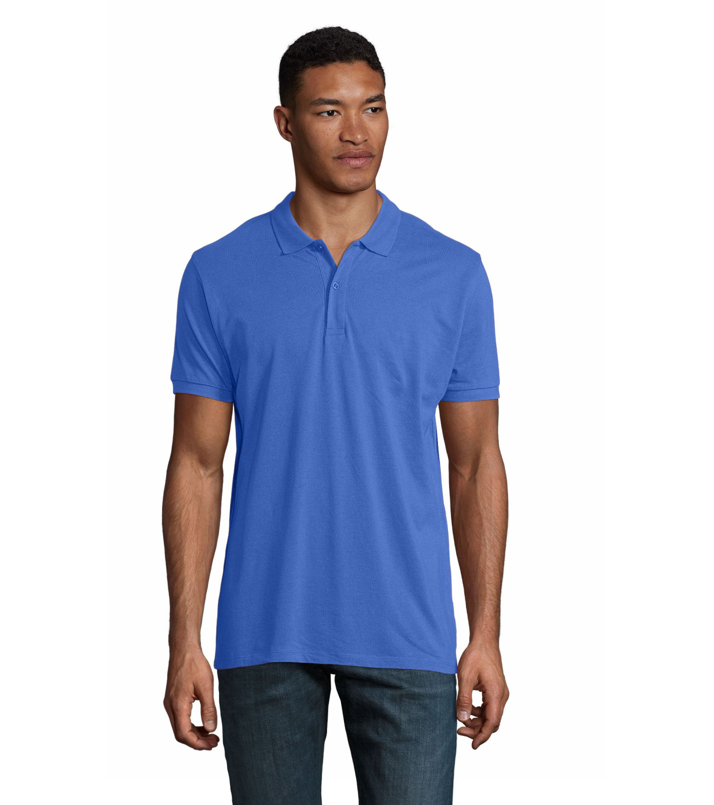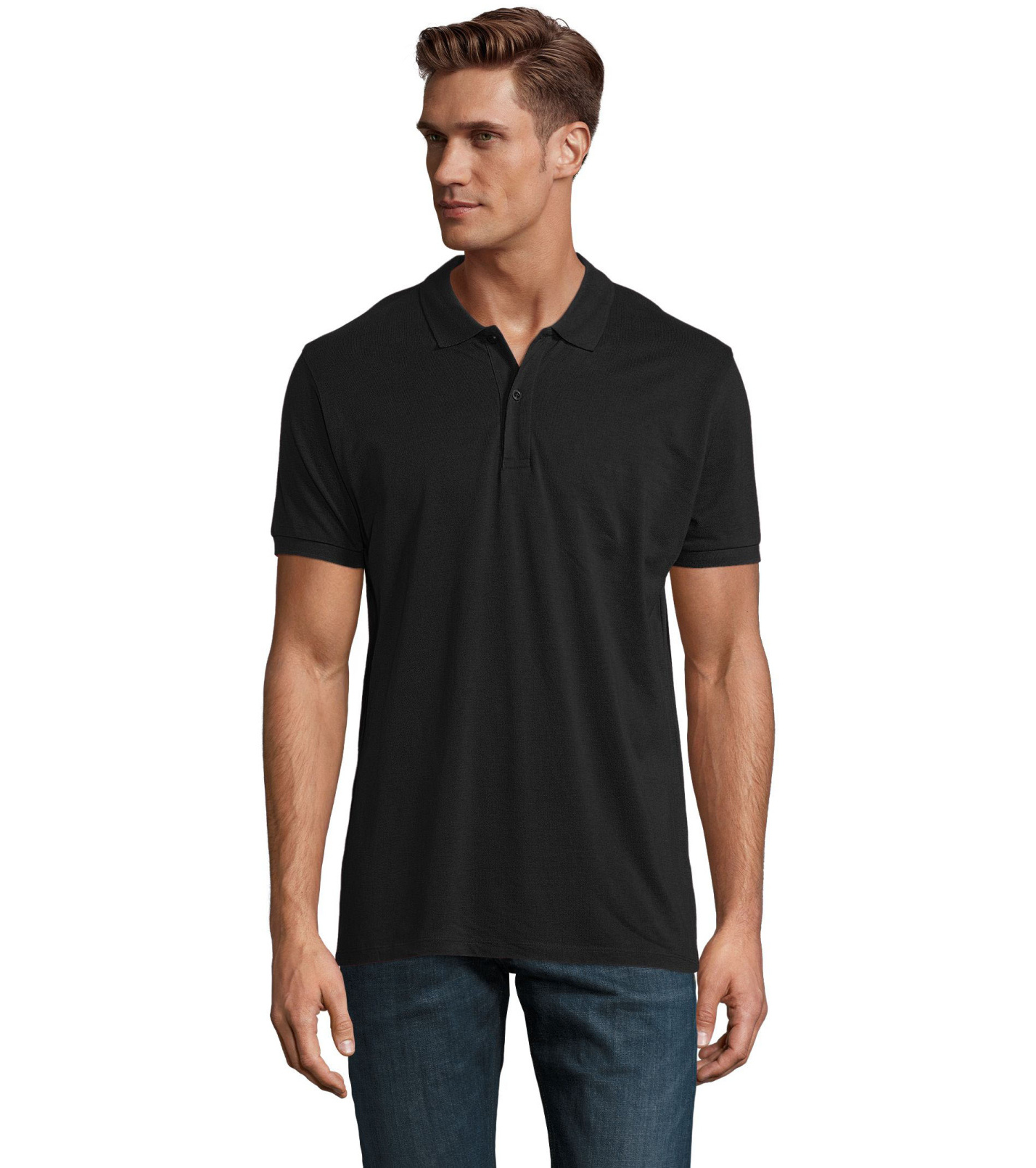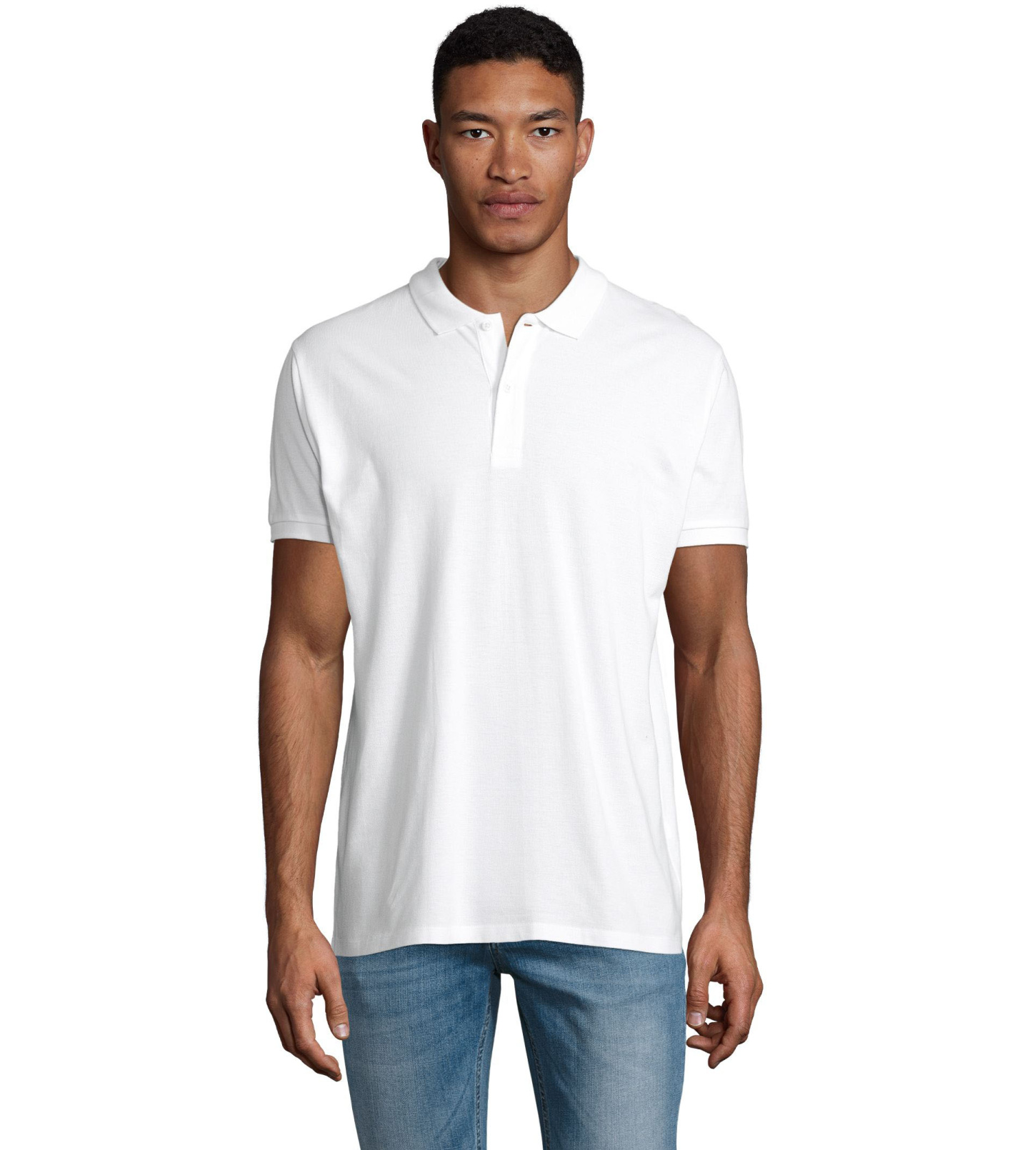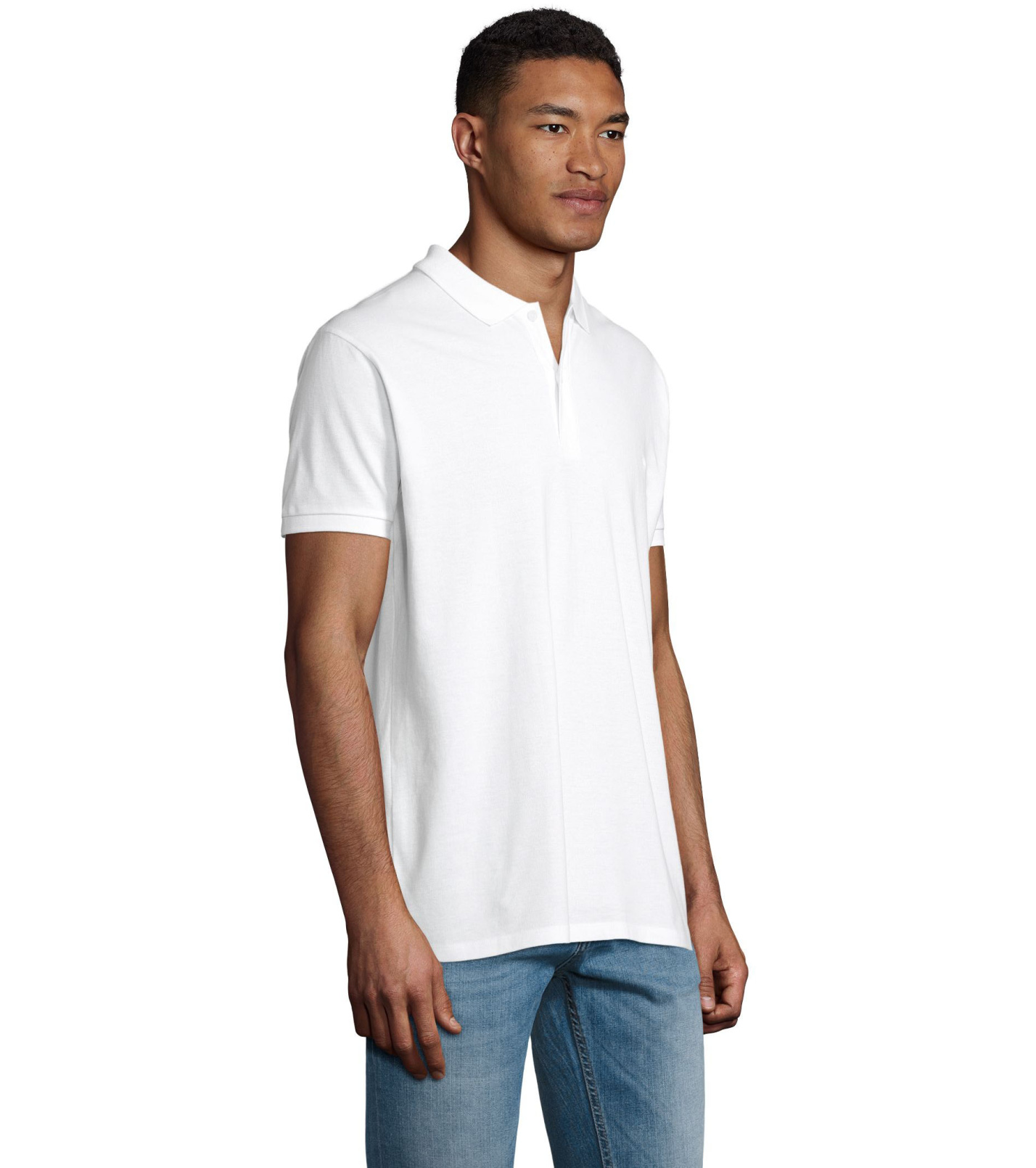 Męska koszulka polo z bawełny organicznej z krótkim rękawem. Prążkowany kołnierzyk i szwy boczne. Guziki zapinane pod szyją w kolorze koszulki polo. Zapasowy guzik na wewnętrznym szwie bocznym.