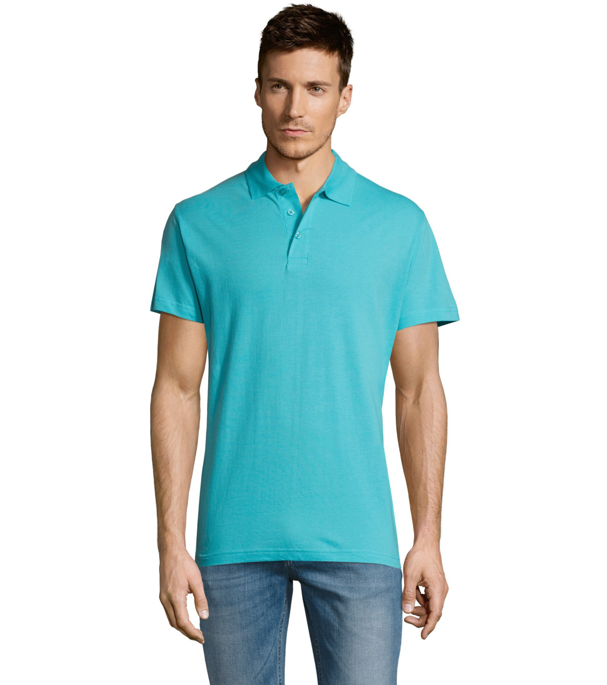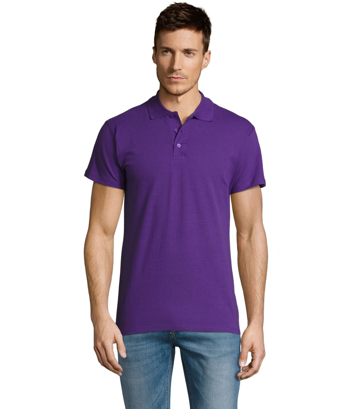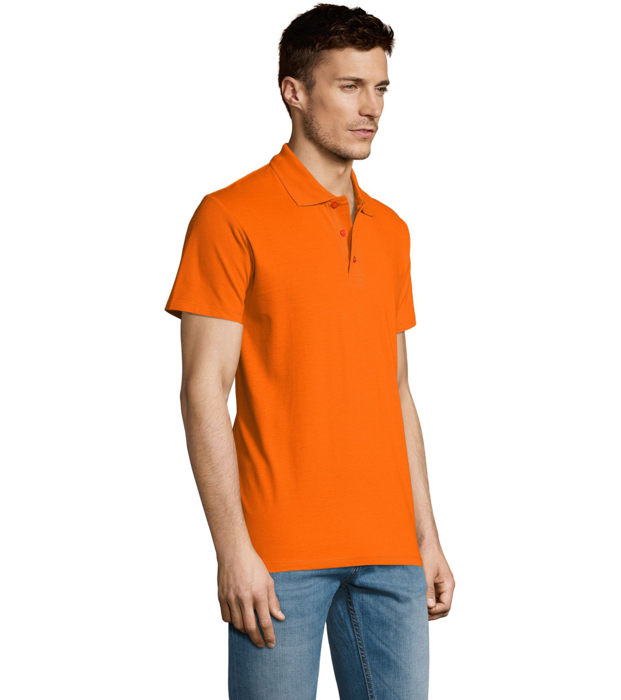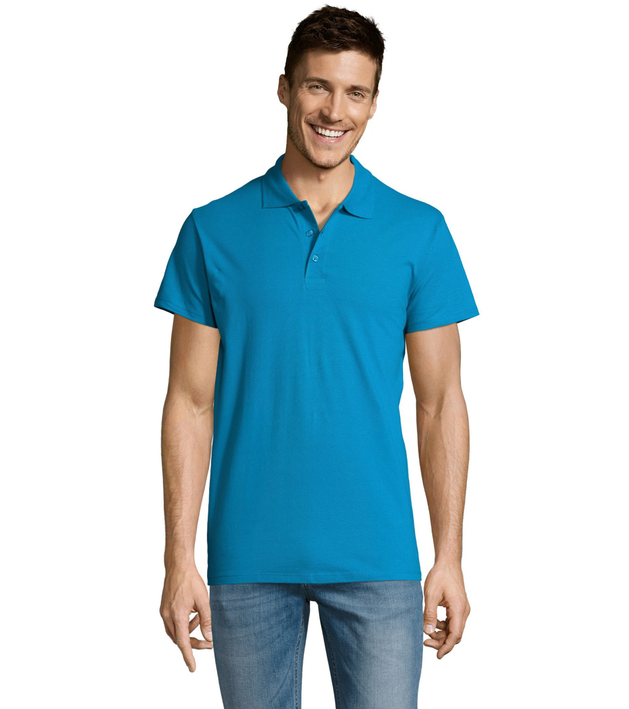 Męska bawełniana koszulka polo z krótkim rękawem. Produkt o doskonałym stosunku ceny do jakości oferowany w szerokiej gamie kolorystycznej. Koszulka polo o dopasowanym kroju z trzema guzikami w odcieniu koszulki polo do zapinania pod szyją i jednym zapasowym guzikiem na wewnętrznym szwie. Prosty dół z rozcięciami po bokach.