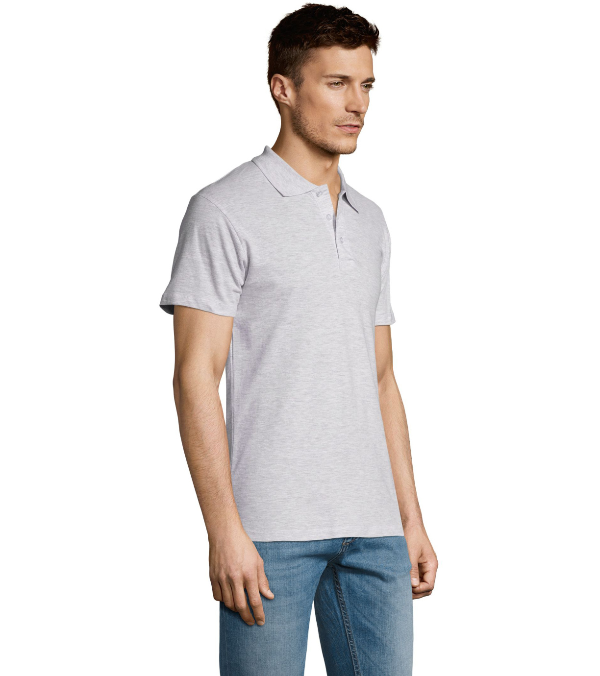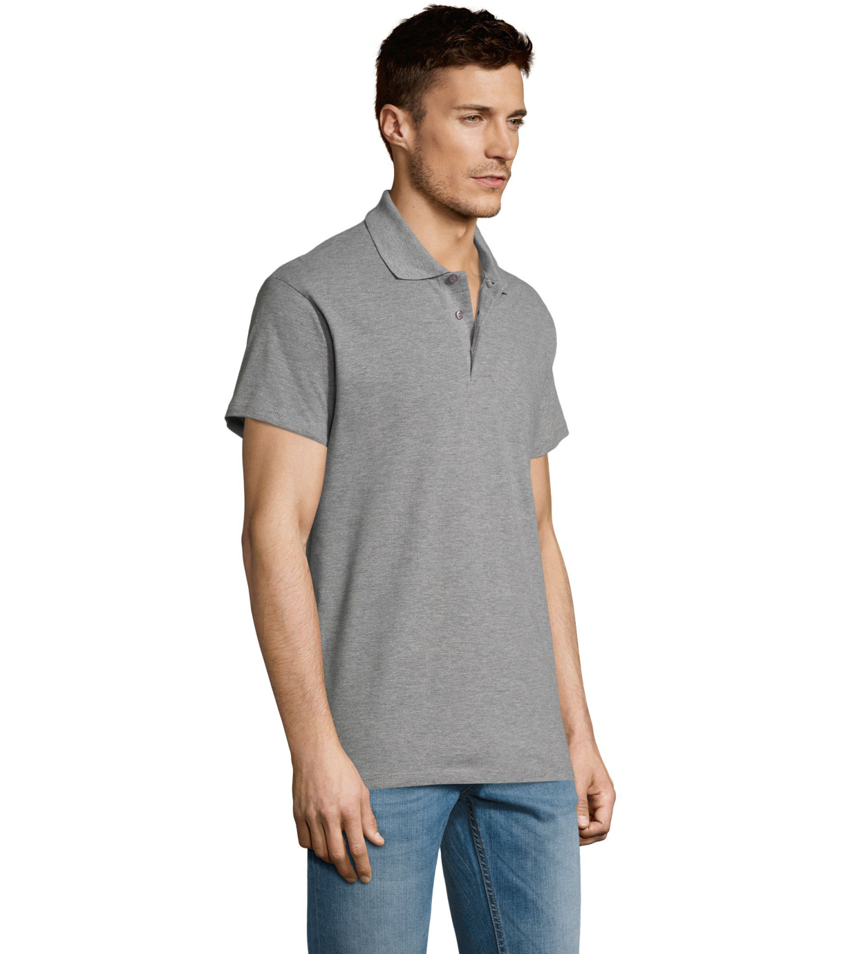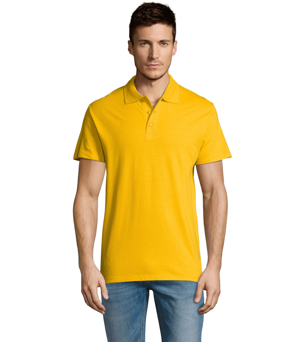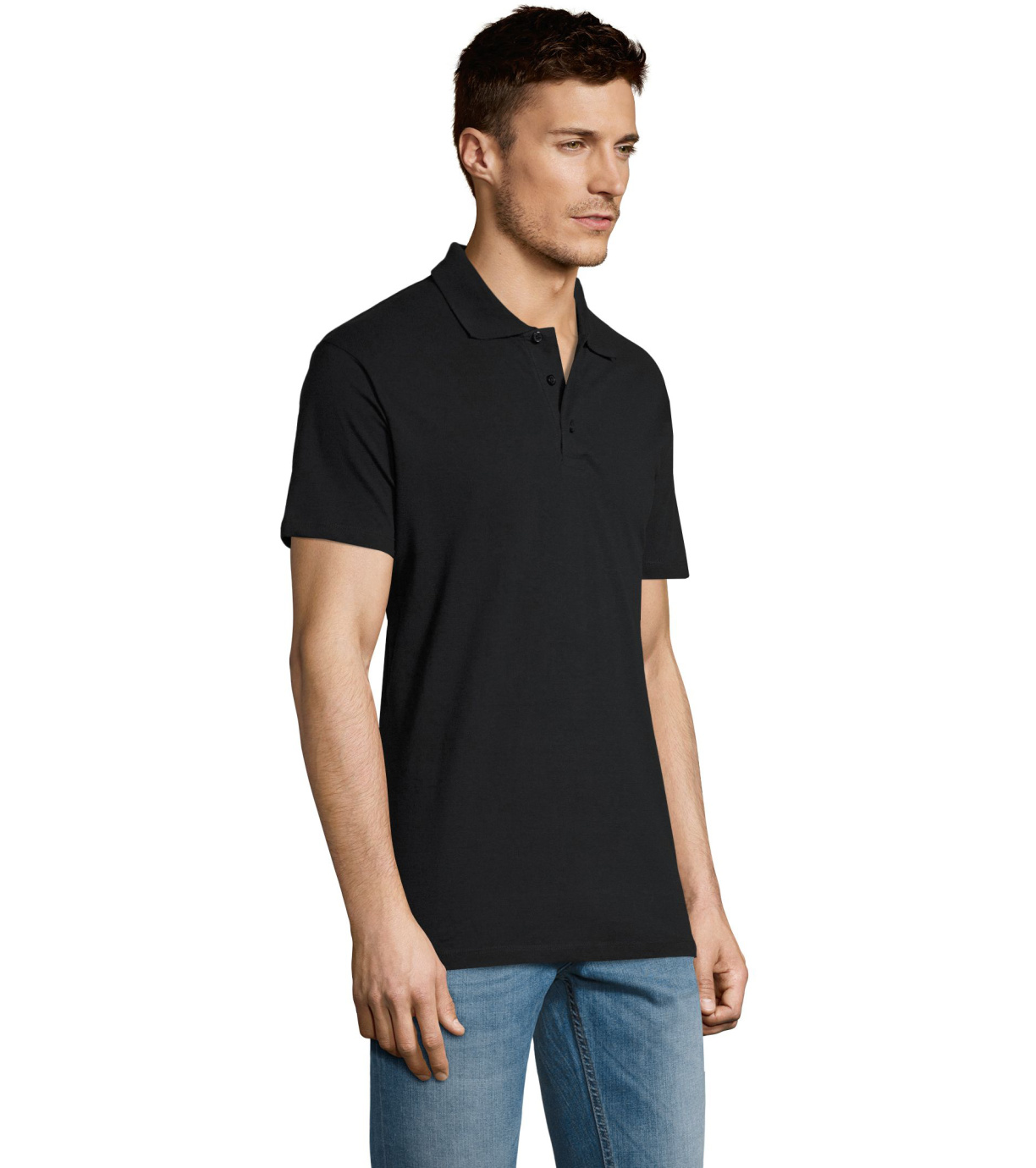 Męska bawełniana koszulka polo z krótkim rękawem. Produkt o doskonałym stosunku ceny do jakości oferowany w szerokiej gamie kolorystycznej. Koszulka polo o dopasowanym kroju z trzema guzikami w odcieniu koszulki polo do zapinania pod szyją i jednym zapasowym guzikiem na wewnętrznym szwie. Prosty dół z rozcięciami po bokach.