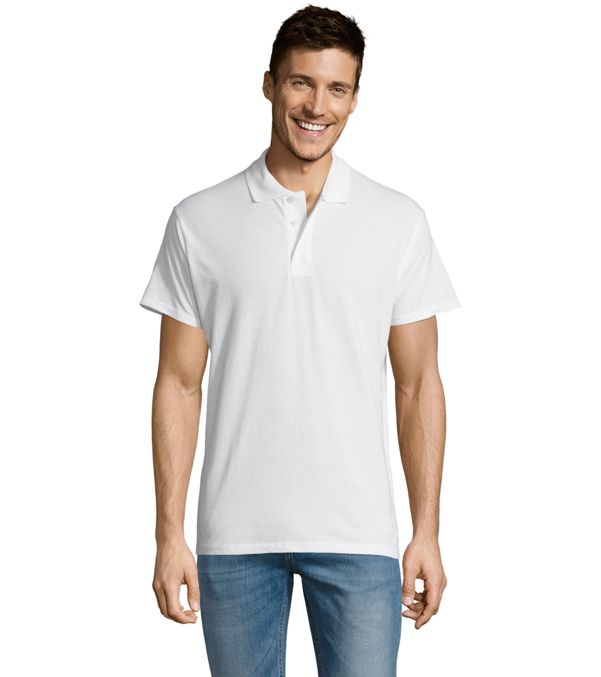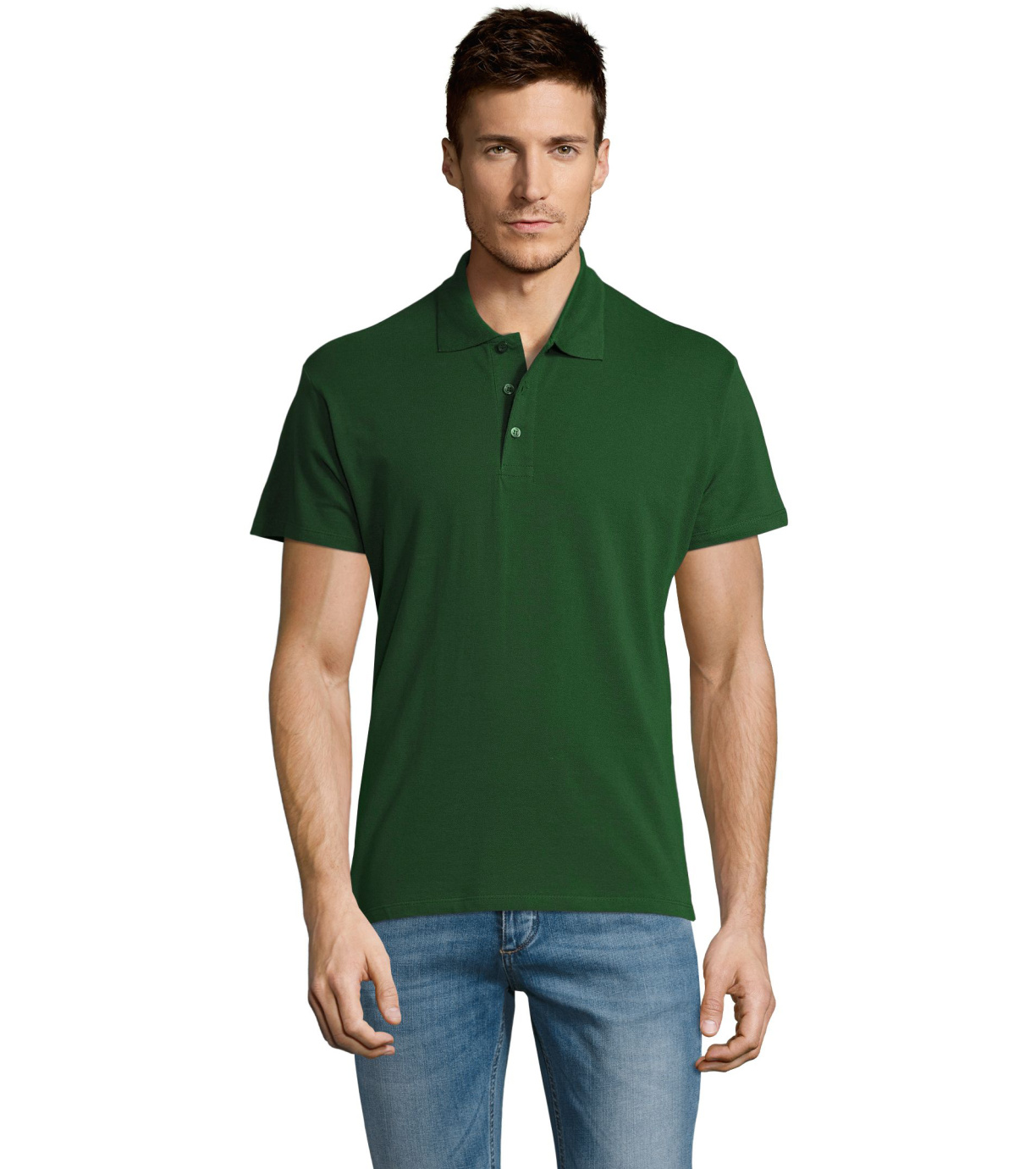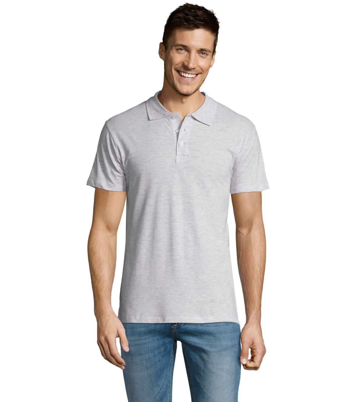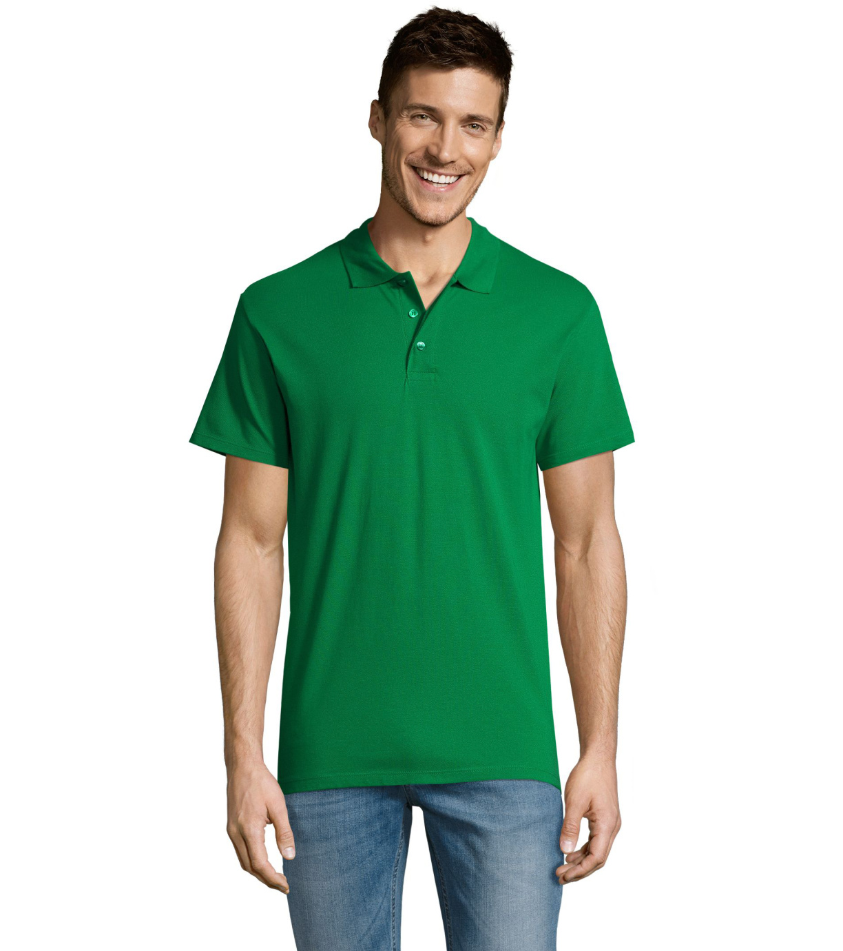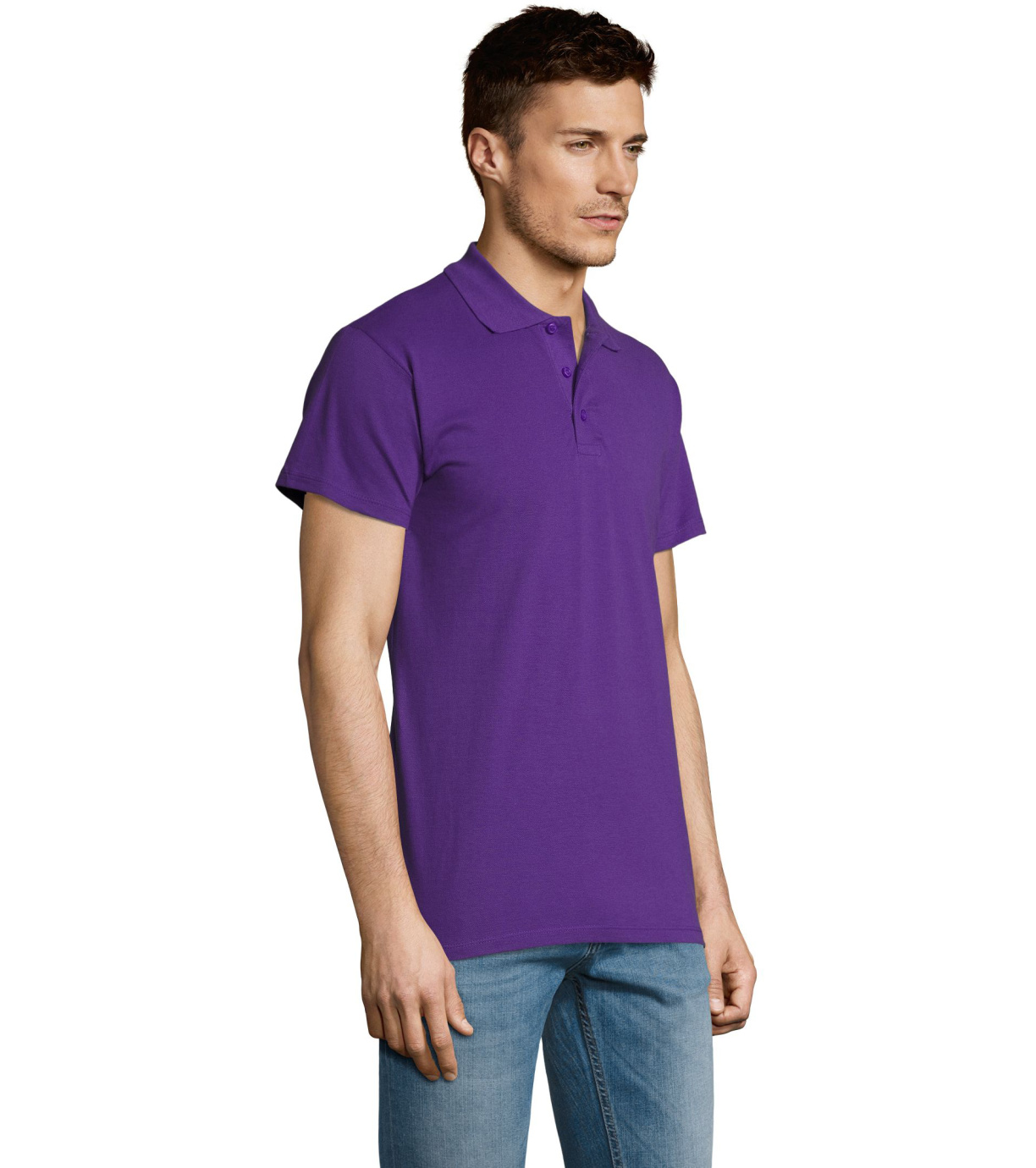 Męska bawełniana koszulka polo z krótkim rękawem. Produkt o doskonałym stosunku ceny do jakości oferowany w szerokiej gamie kolorystycznej. Koszulka polo o dopasowanym kroju z trzema guzikami w odcieniu koszulki polo do zapinania pod szyją i jednym zapasowym guzikiem na wewnętrznym szwie. Prosty dół z rozcięciami po bokach.