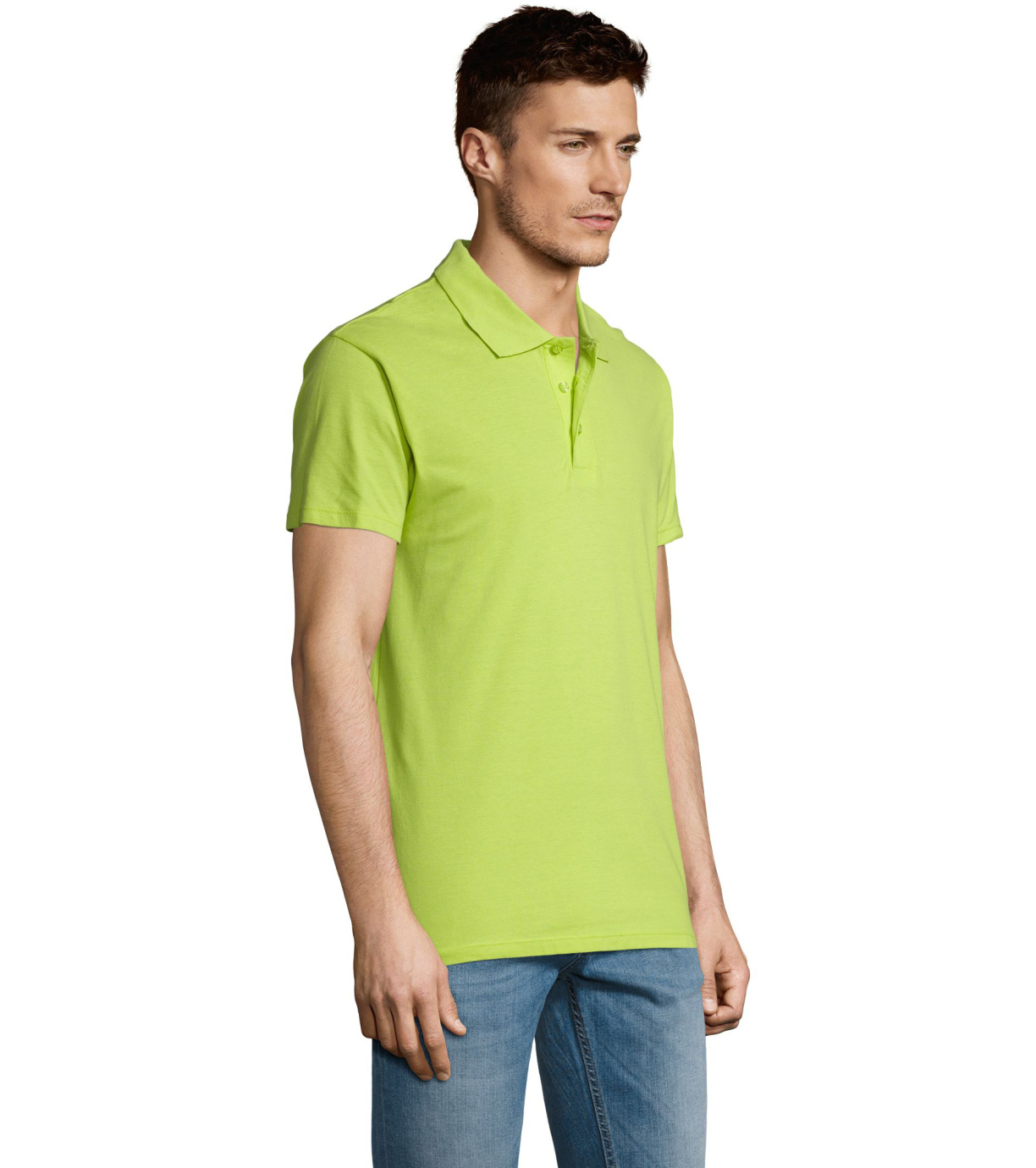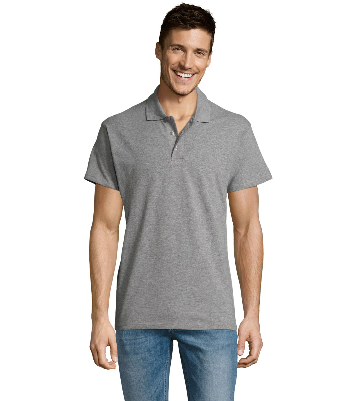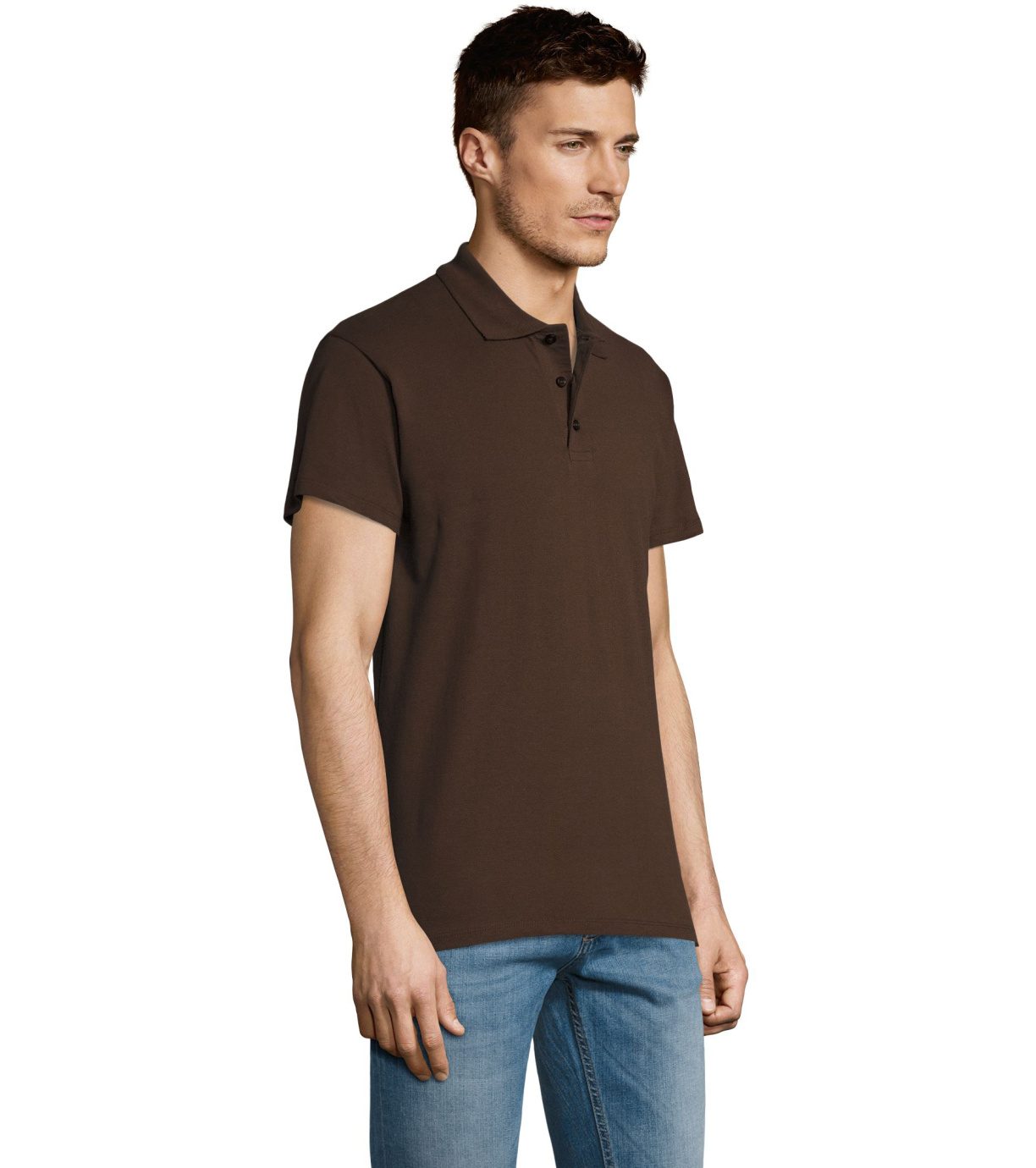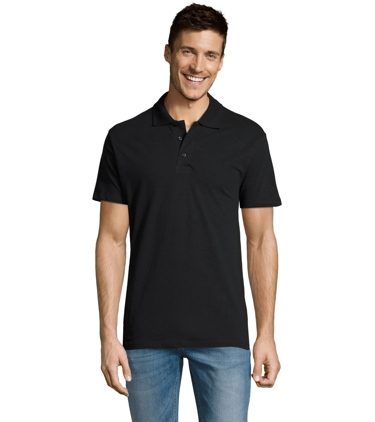 Męska bawełniana koszulka polo z krótkim rękawem. Produkt o doskonałym stosunku ceny do jakości oferowany w szerokiej gamie kolorystycznej. Koszulka polo o dopasowanym kroju z trzema guzikami w odcieniu koszulki polo do zapinania pod szyją i jednym zapasowym guzikiem na wewnętrznym szwie. Prosty dół z rozcięciami po bokach.