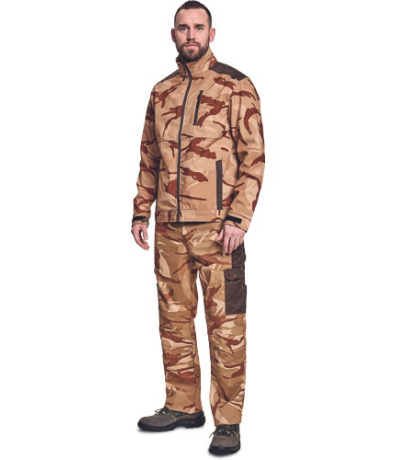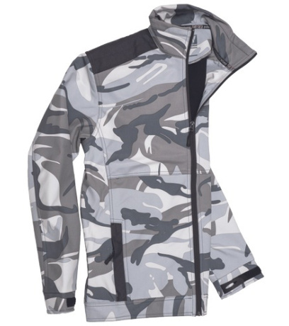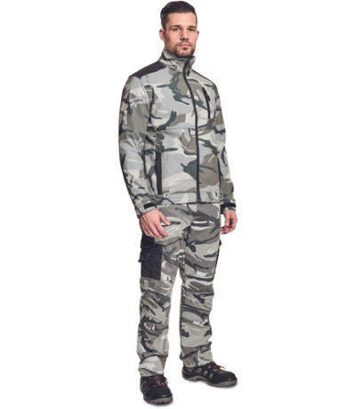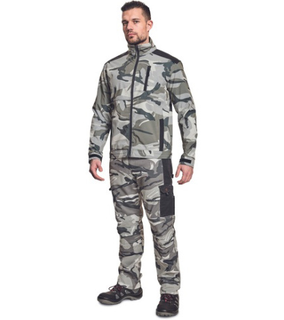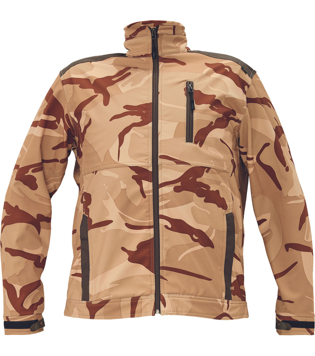Opis: • męska kurtka softshellowa z wysokim kołnierzem • wzmocnienia na ramionach (OXFORD 600 D) • dwie kieszenie boczne i jedna napiersiowa zapinane na zamek błyskawiczny • regulacja mankietów na rzepy Velcro • efektowny wzór moro
