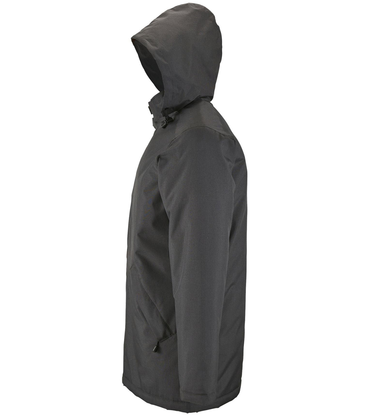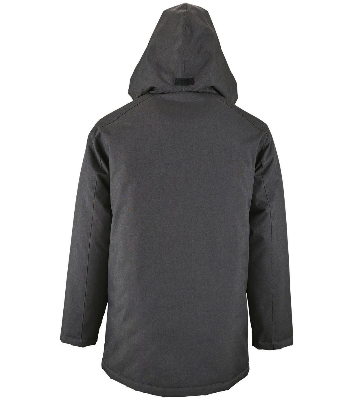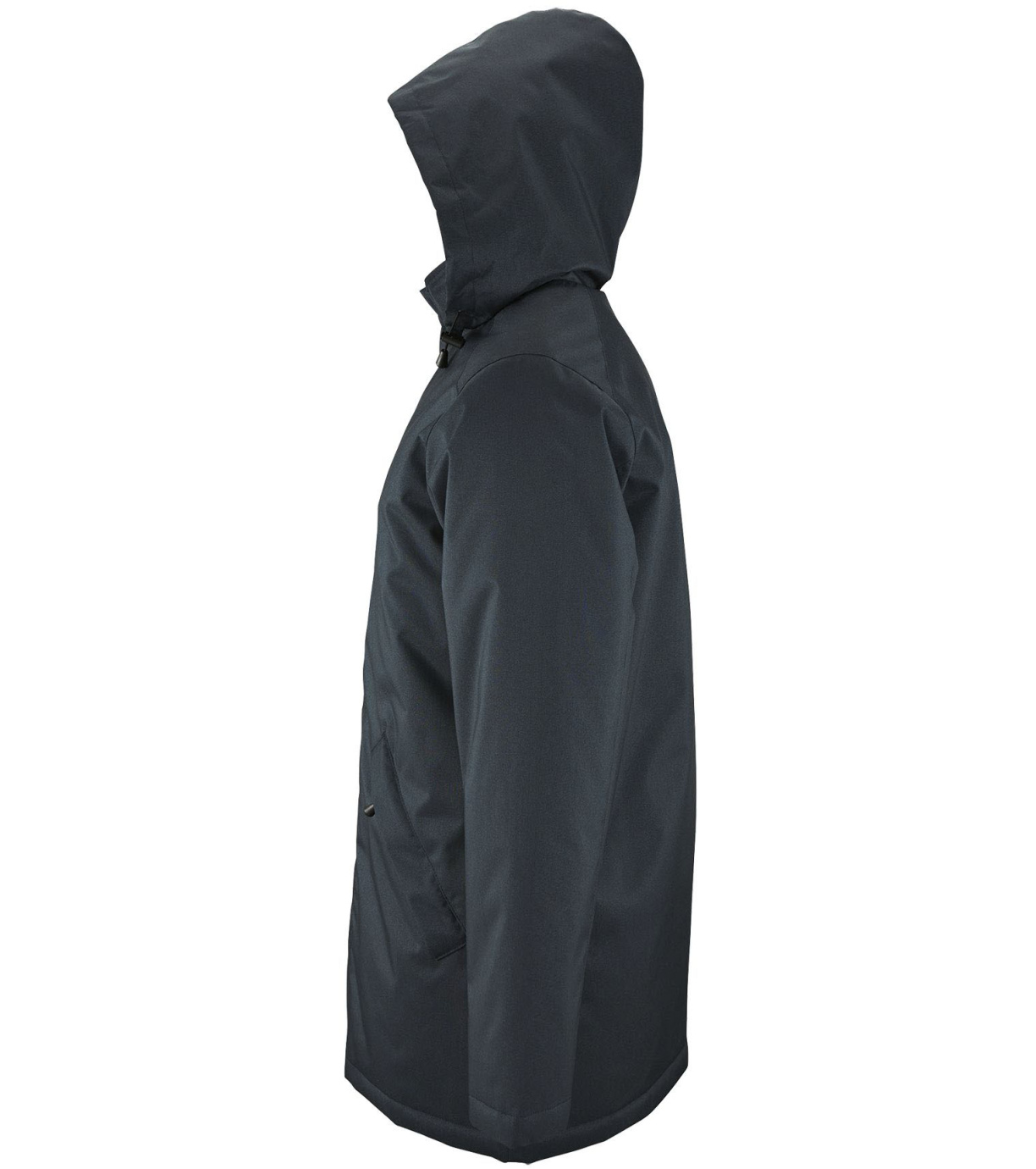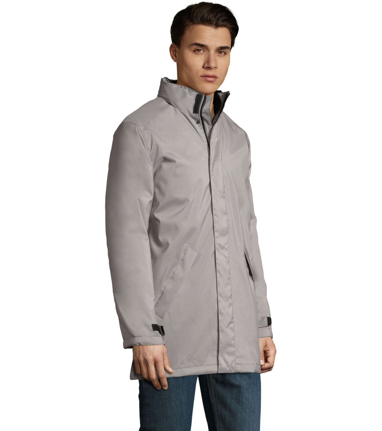 Męski płaszcz zapinany na podwójny zamek, listwę zapinaną na rzep i ukryte zatrzaski, ma wyściełany polarem kaptur schowany wewnątrz kołnierza. Płaszcz ma 2 kieszenie zapinane na zamek oraz 1 kieszeń wewnętrzną. Rękawy zakończone mankietami z rzepem.