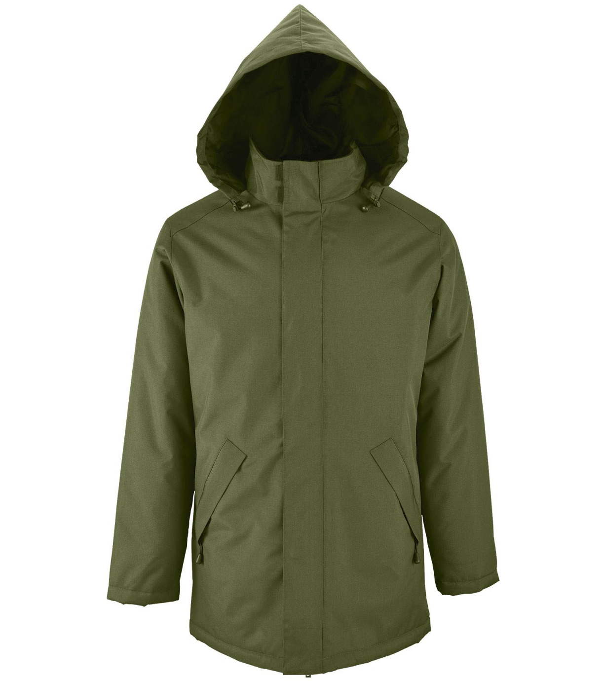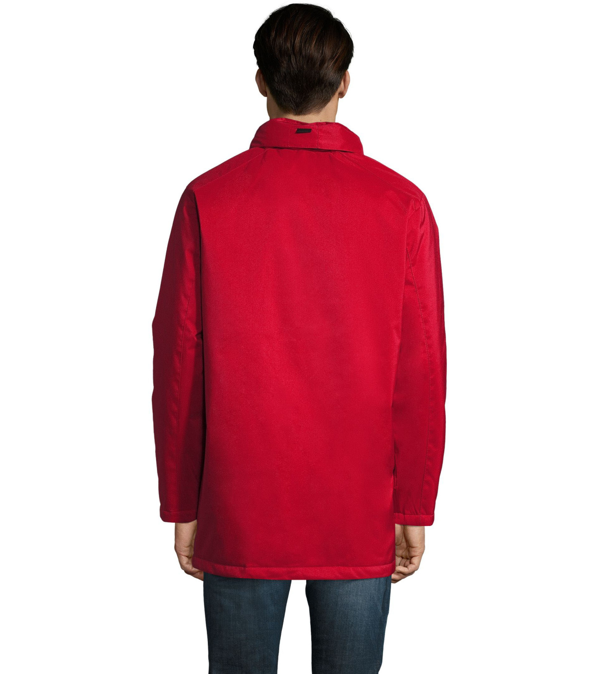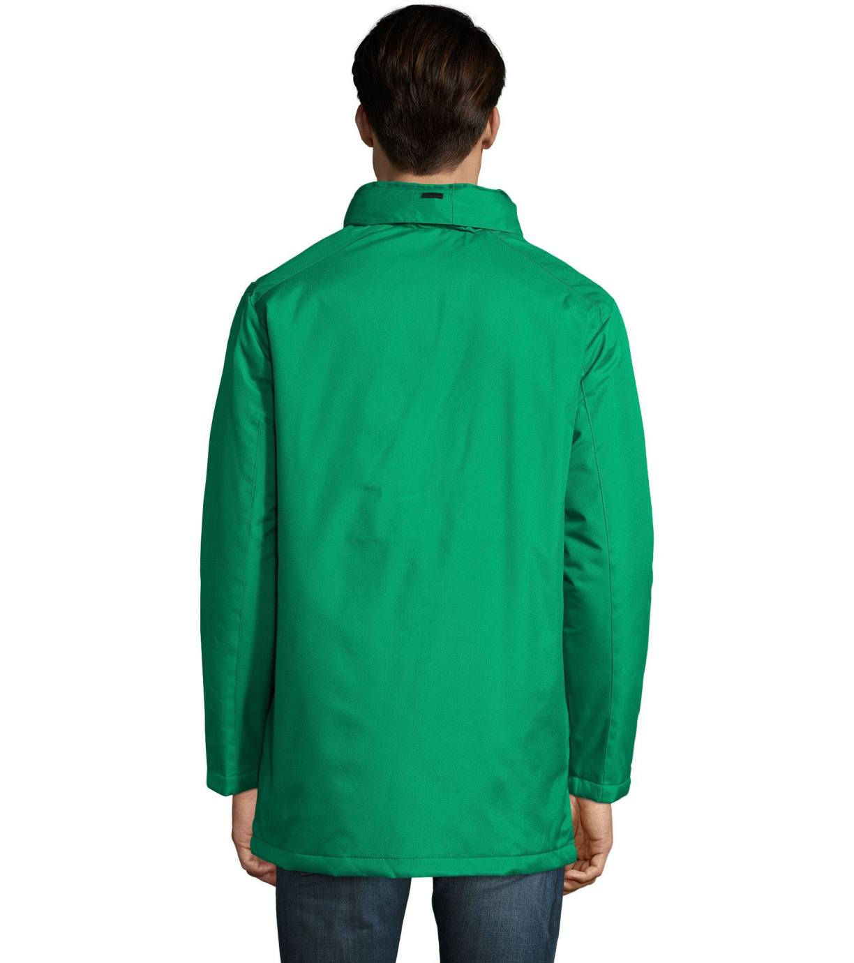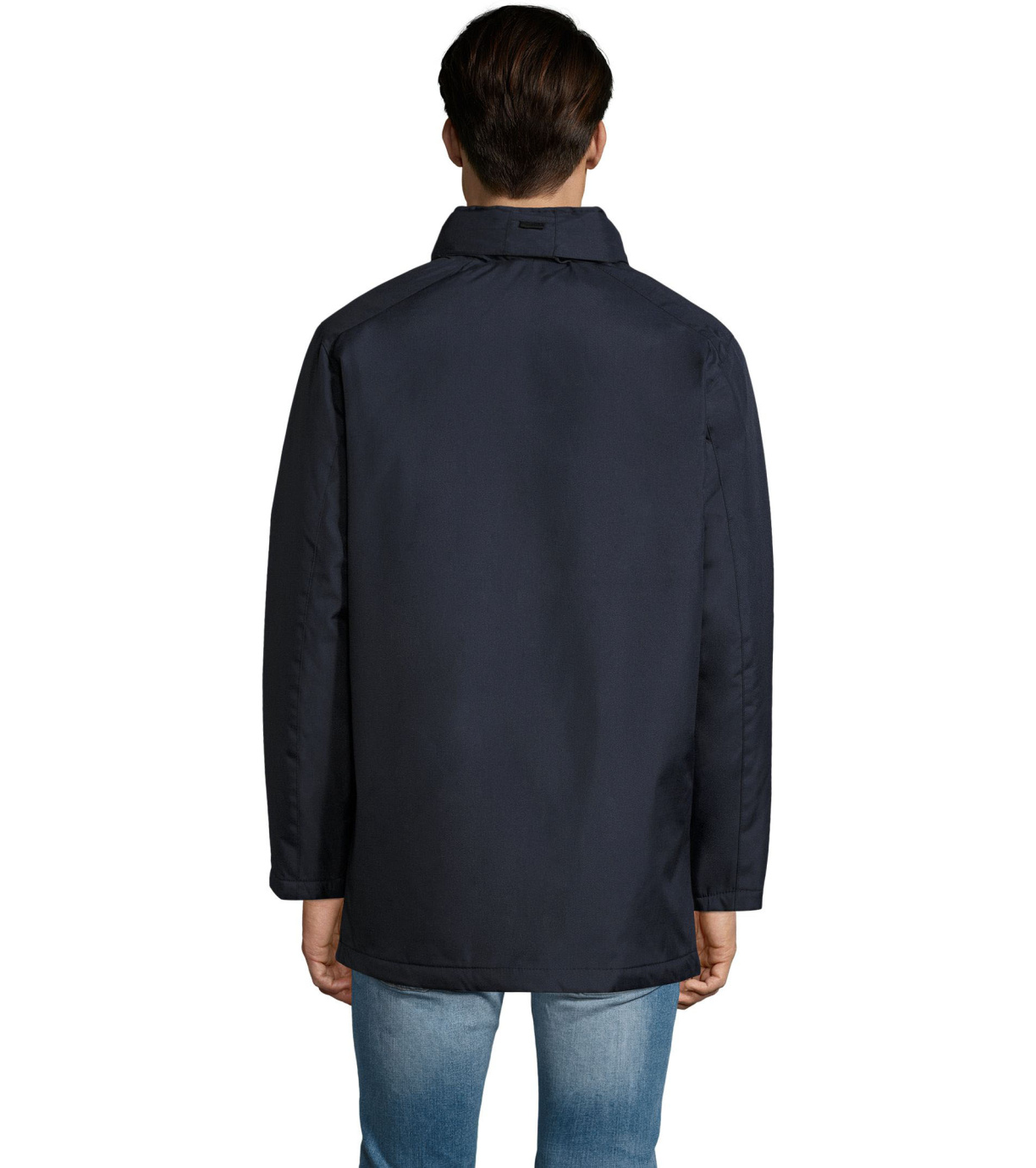 Męski płaszcz zapinany na podwójny zamek, listwę zapinaną na rzep i ukryte zatrzaski, ma wyściełany polarem kaptur schowany wewnątrz kołnierza. Płaszcz ma 2 kieszenie zapinane na zamek oraz 1 kieszeń wewnętrzną. Rękawy zakończone mankietami z rzepem.