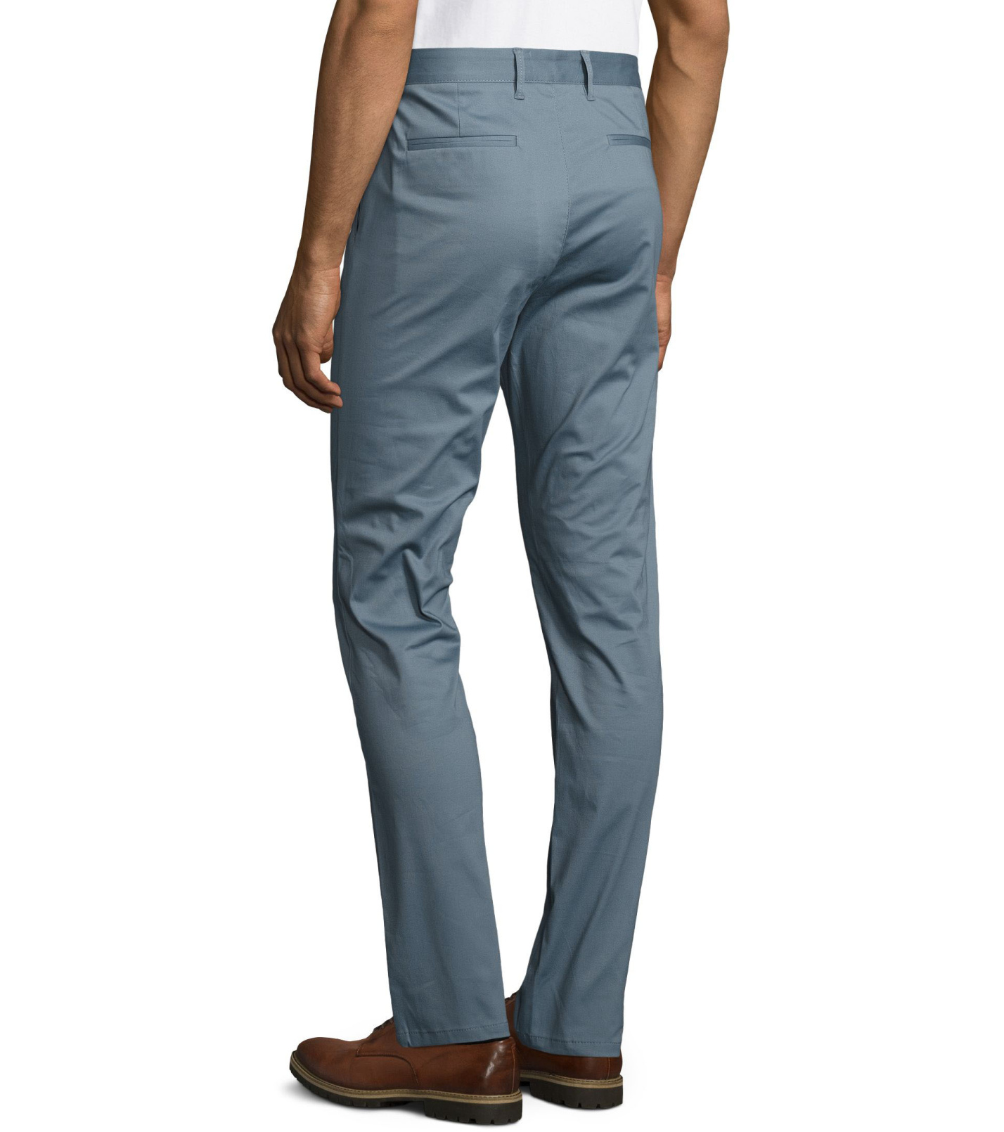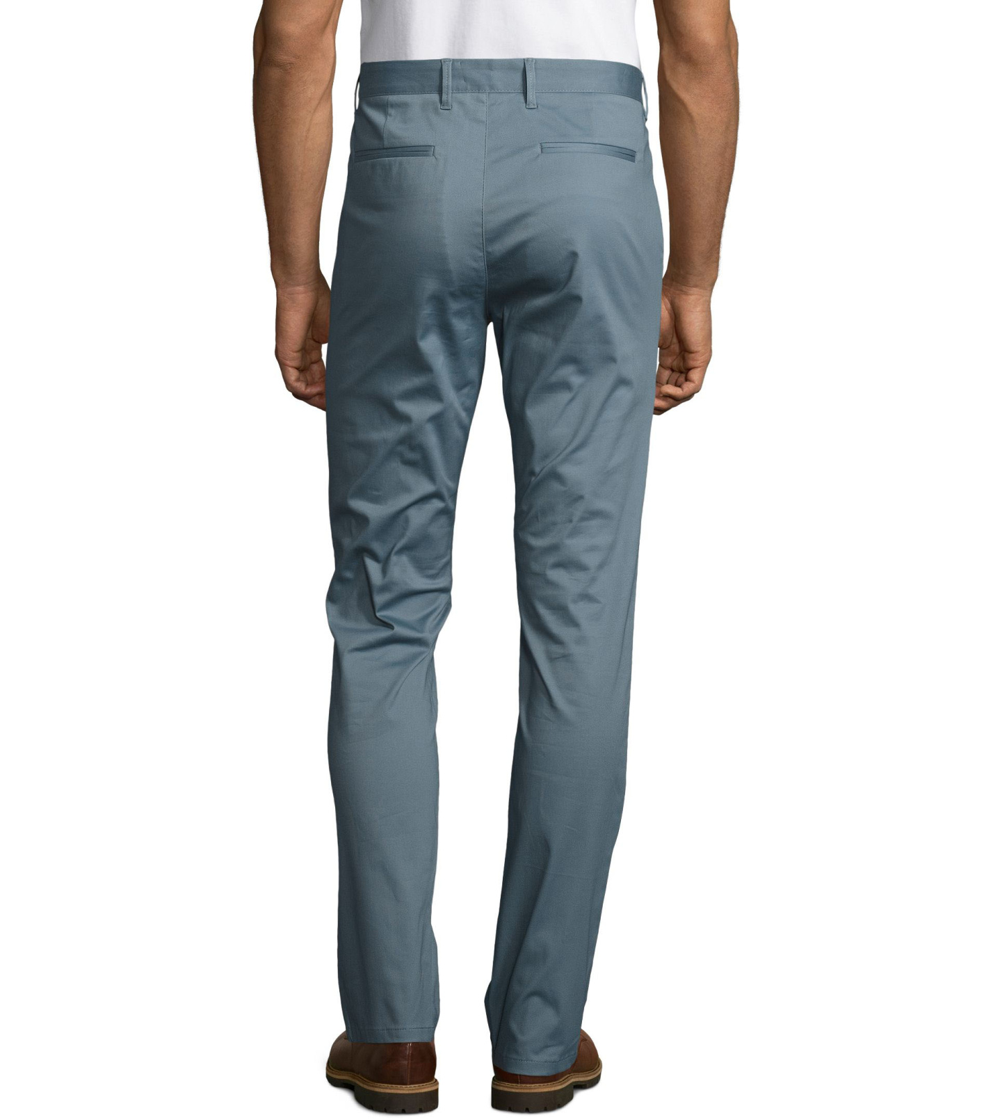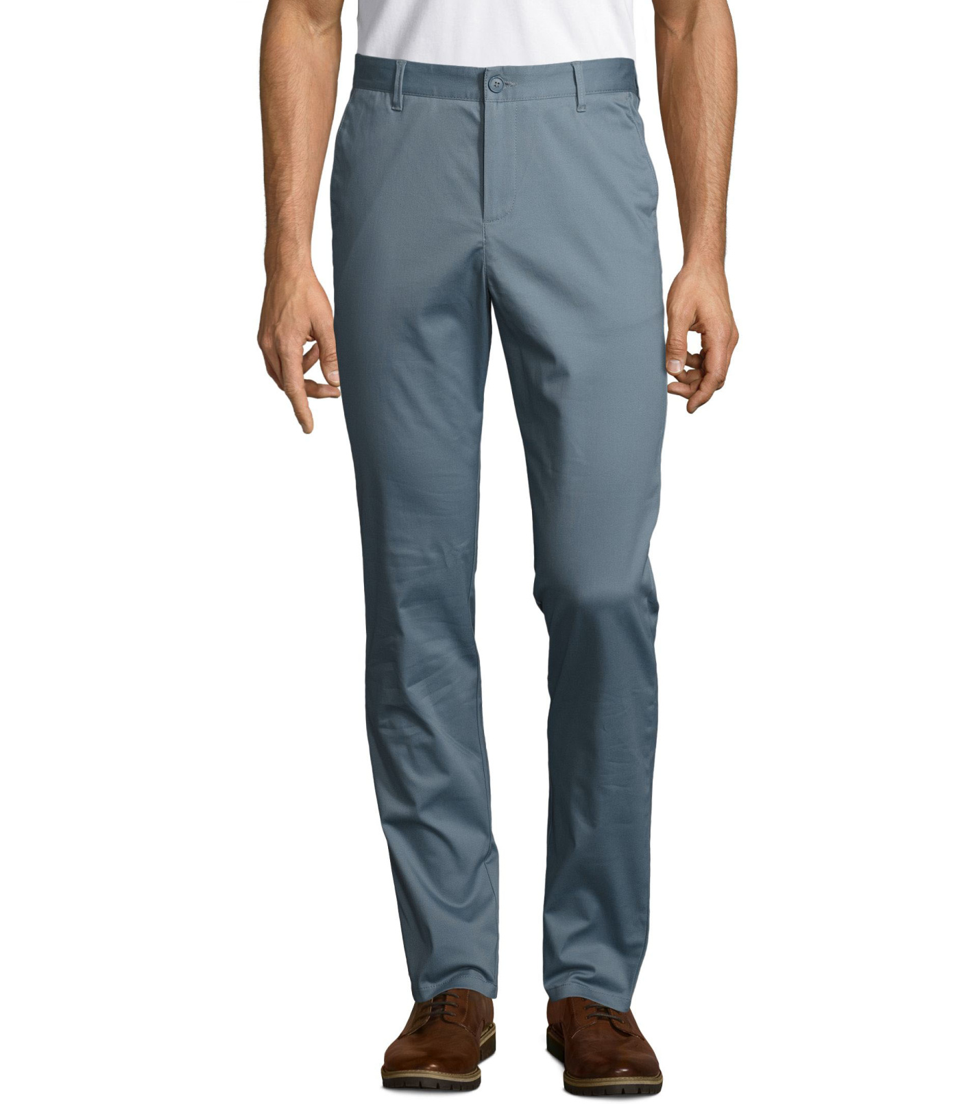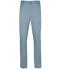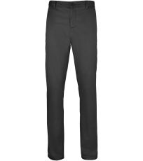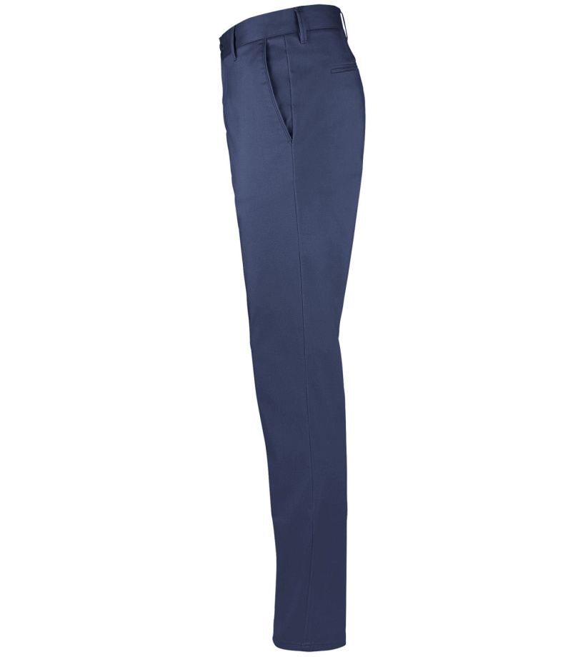 Satynowe spodnie męskie o dopasowanym kroju. Ma dwie kieszenie włoskie z przodu, 2 kieszenie z tyłu, małą kieszonkę oraz szlufki na pasek.