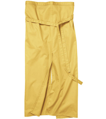 Duże rozcięcie ułatwiające chodzenie i krawat z tej samej tkaniny
