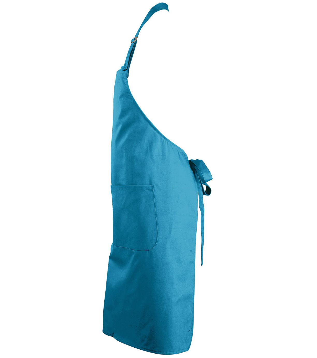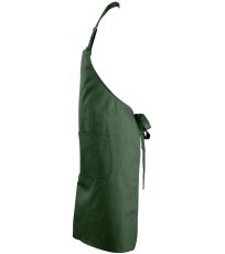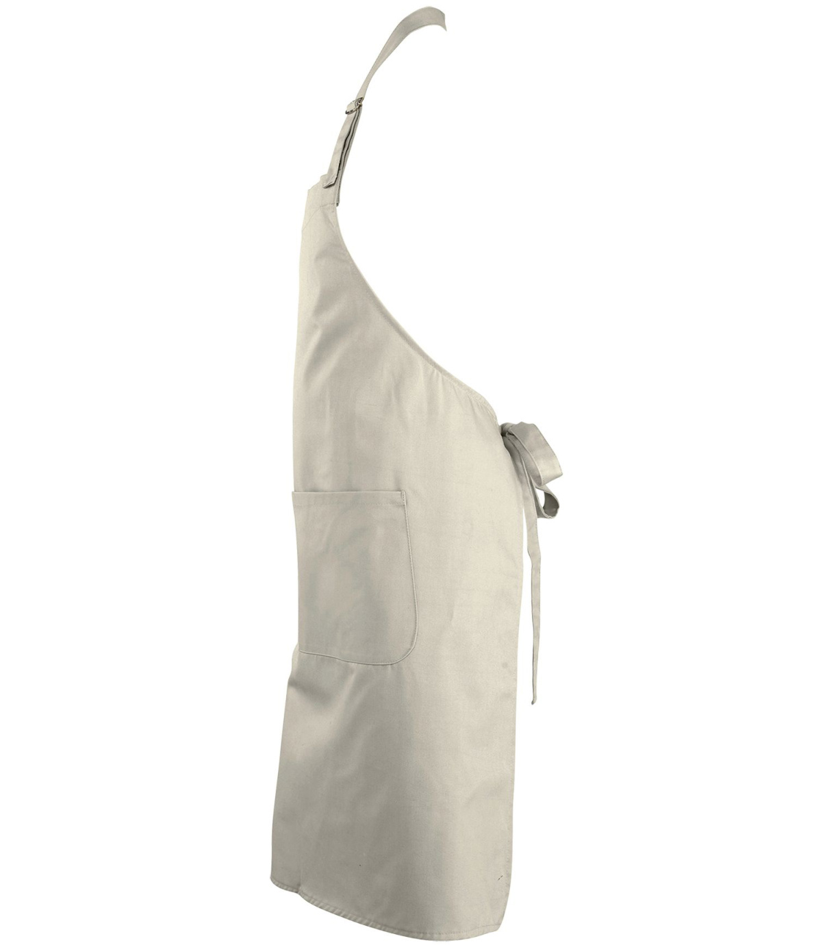 Fartuch wykonany z poliestru i bawełny, zapewniający długotrwałe zachowanie koloru i łatwą pielęgnację. Fartuch wyposażony jest w wysokiej jakości metalową klamrę umożliwiającą regulację długości dekoltu. Zaletą fartucha jest duża przednia kieszeń, podzielona na dwie mniejsze komory.