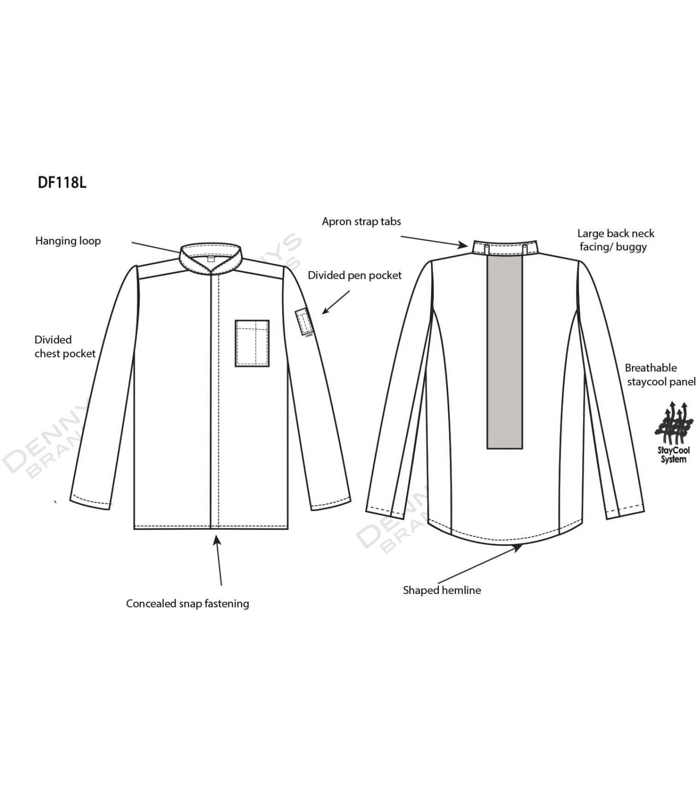 Pojedyncze zapięcie na piersi z ukrytymi zatrzaskamiSystem Staycool