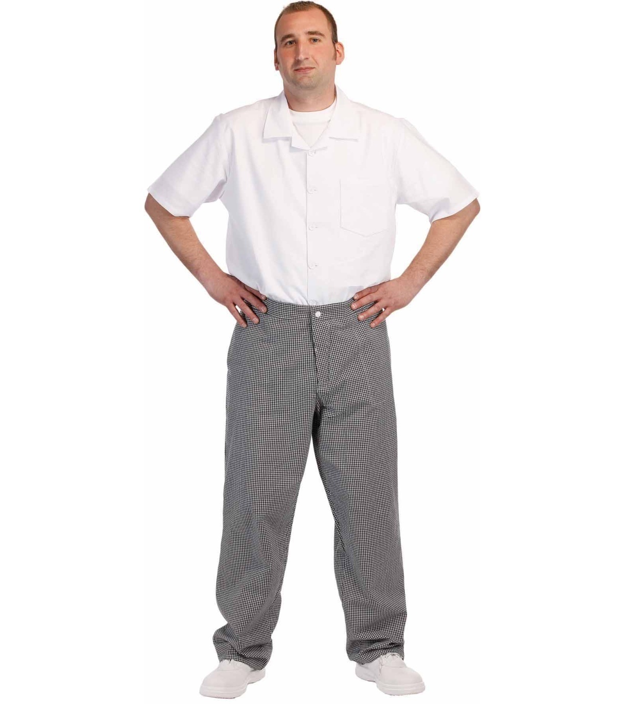 Opis: spodnie dla rzeźnika • regulowane w pasie za pomocą guzików • 2 kieszenie z przodu i 1 tylna