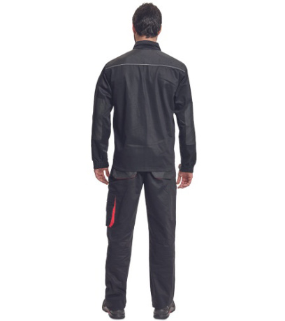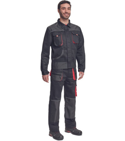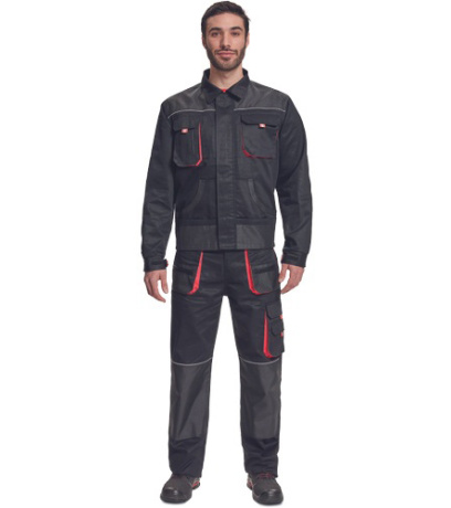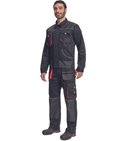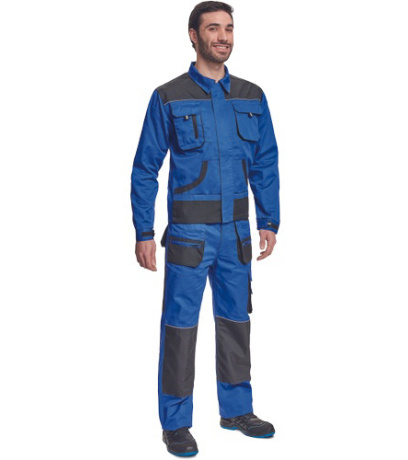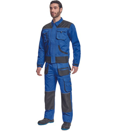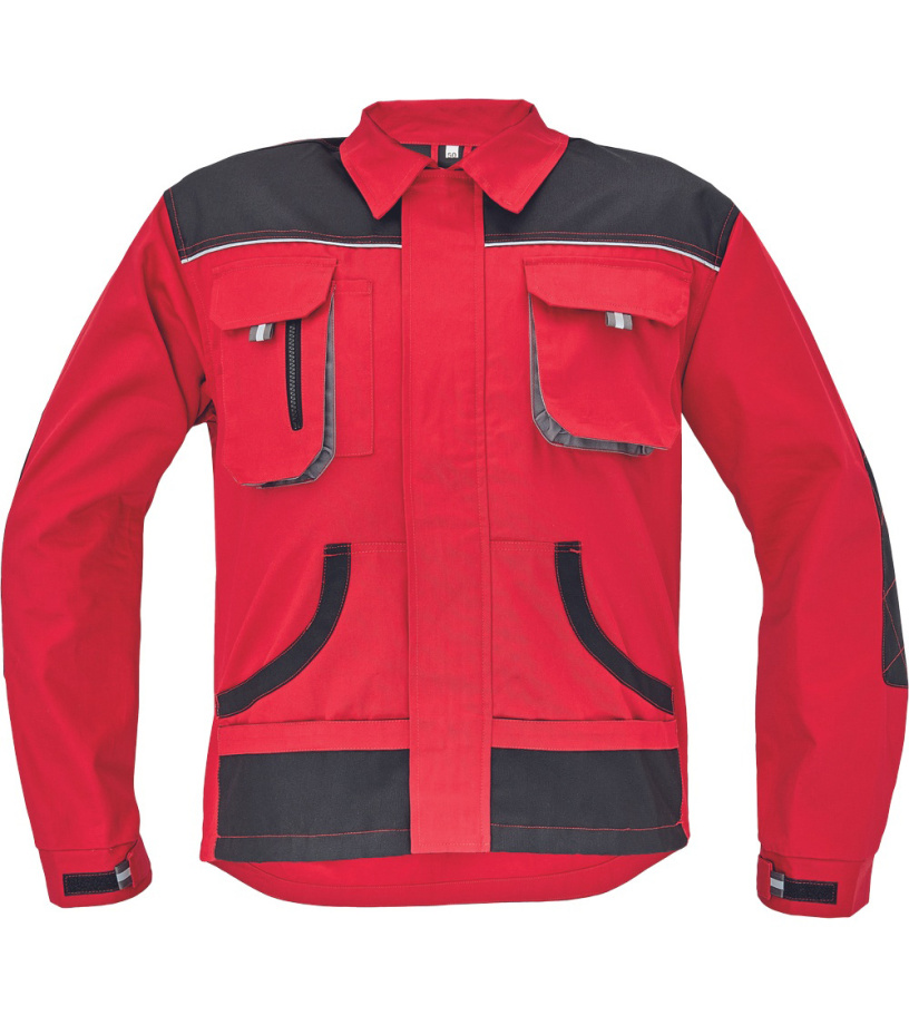 Opis: men's working cotton jacket; zipper closing covered with velcro placket; 2 breast pockets with velcro closing; 2 multifunctional side pockets; polyester Oxford reinforced elbow parts and shoulders.