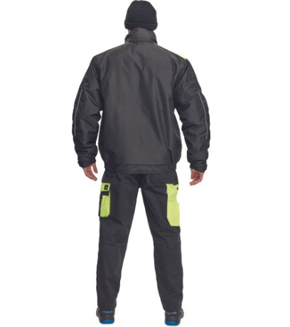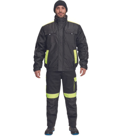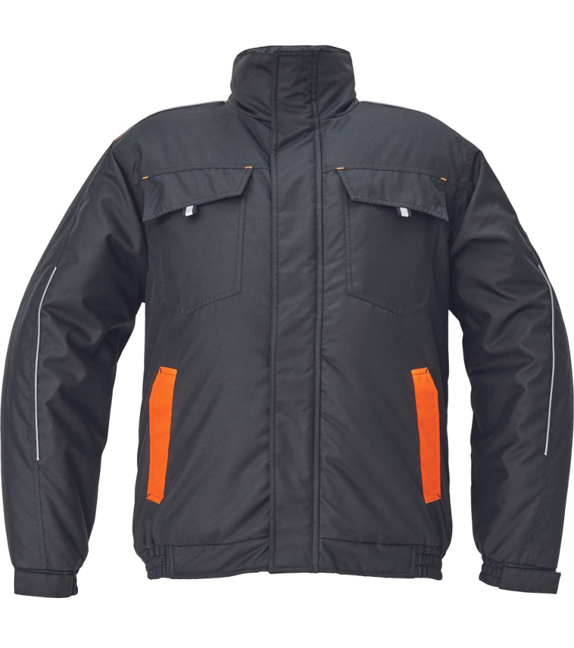 Opis: men´s winter pilot jacket; elastic waist; zipper closure covered by velcro flap; hood integrated in a collar; 2 side pockets, 2 chest pockets; 1 inner cell phone pocket; elastic cuffs with velcro adjustment; reflective elements.