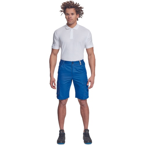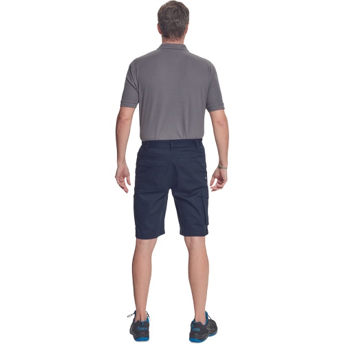 Opis: • męskie szorty robocze z elastyczną talią po bokach • 2 kieszenie boczne i 1 kieszeń na monety, 2 boczne kieszenie wielofunkcyjne w części udowej, 2 kieszenie z tyłu