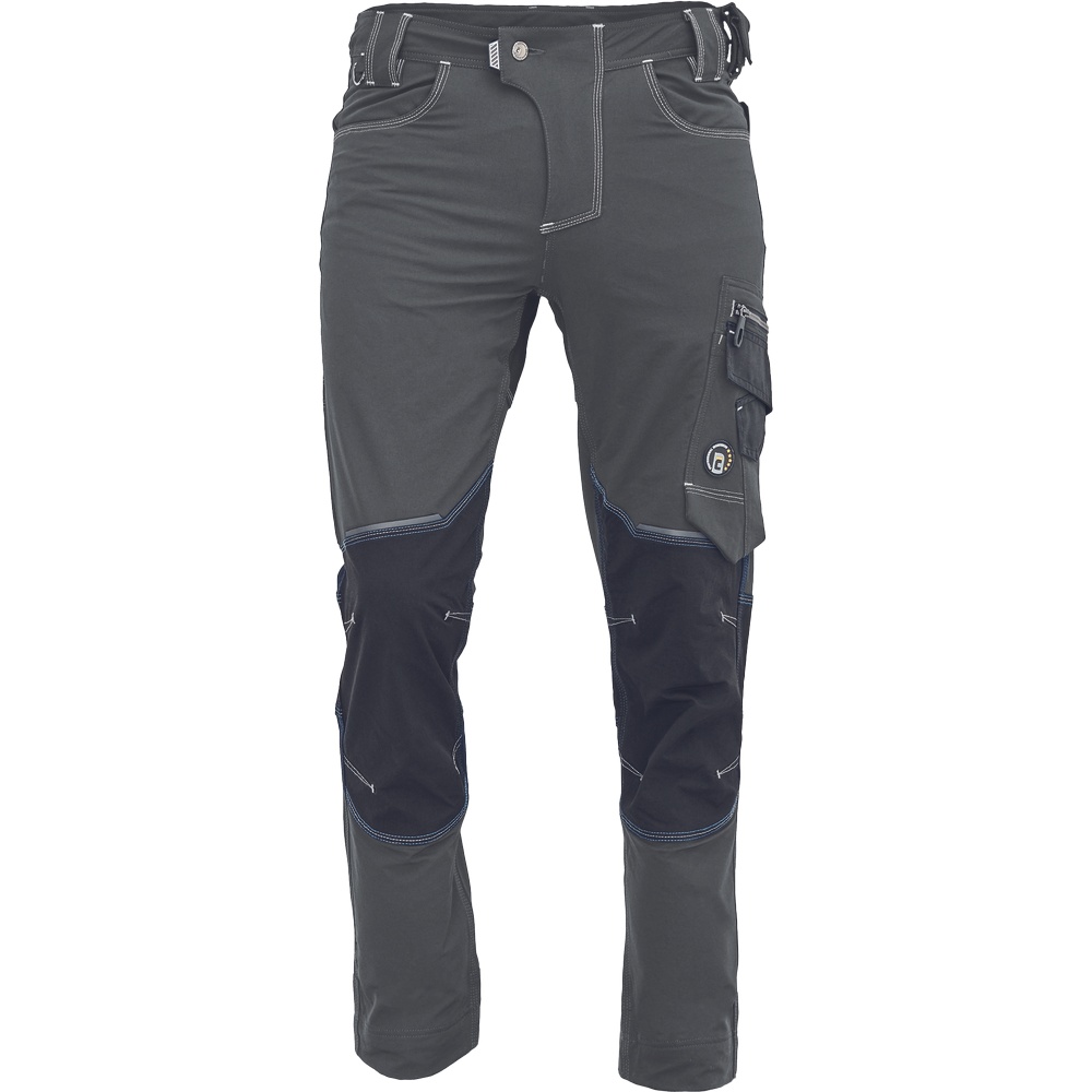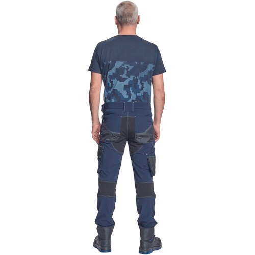 Opis: • męskie spodnie robocze wykonane z unikalnego materiału TrifibetexPRO® (czterokierunkowy nylon) • 2 przednie kieszenie klinowe, 2 tylne naszywane kieszenie zapinane na rzep, po lewej stronie duża kieszeń wielofunkcyjna, po prawej stronie wielofunkcyjne kieszenie na miarę i nóż + uchwyt na ołówek, metalowy pierścień „D”, wzmocnione nakolanniki z tkaniny CORDURA, paski na narzędzia • patent elastycznego pasa • ozdobne potrójne szwy w kontrastowym kolorze • możliwość wydłużenia nogawek • odblaskowe detale ton w ton
