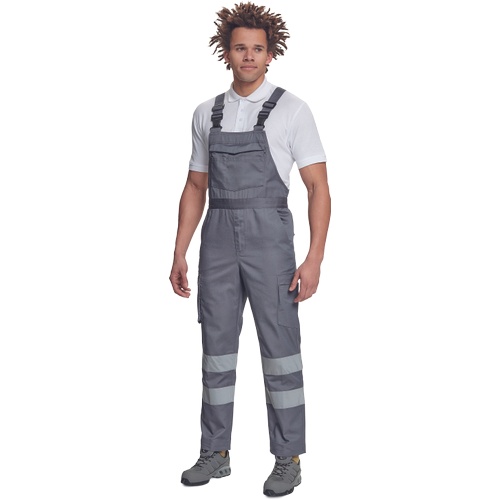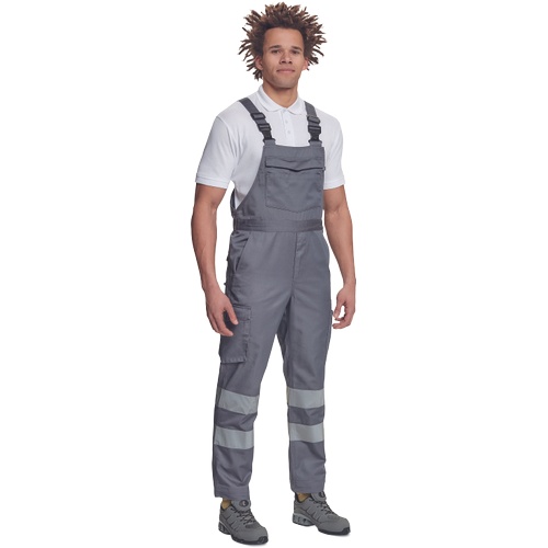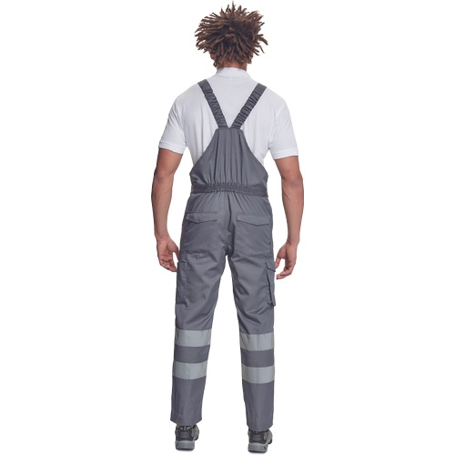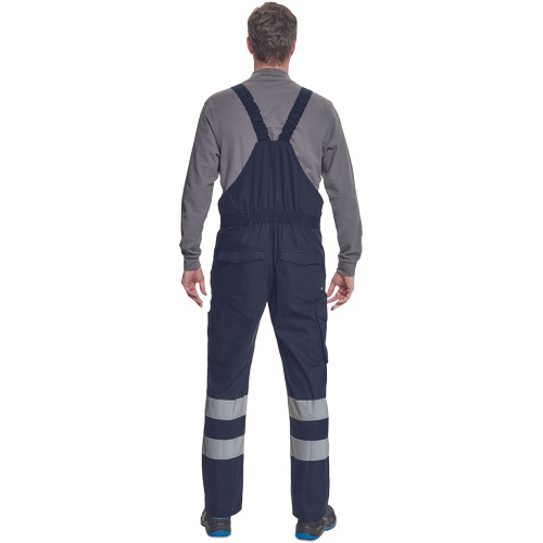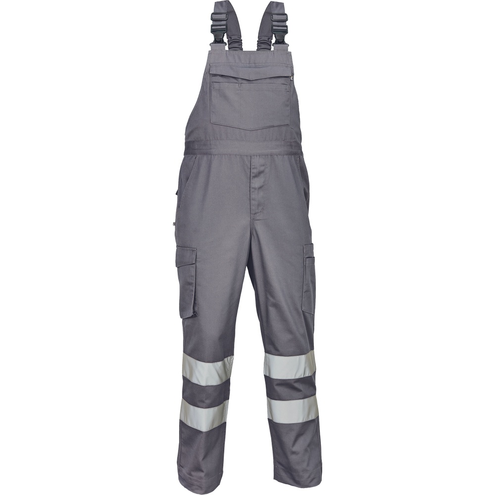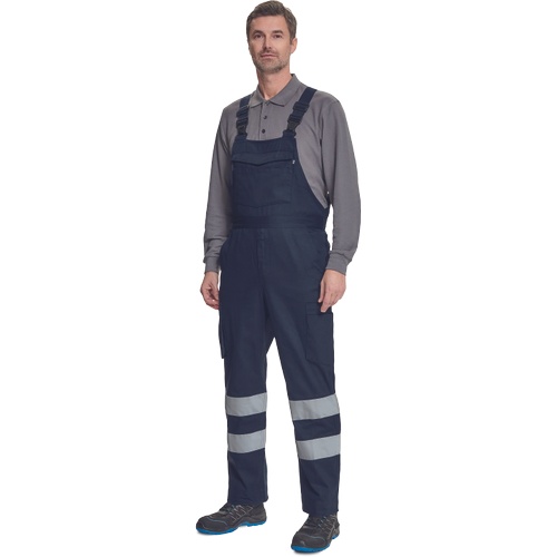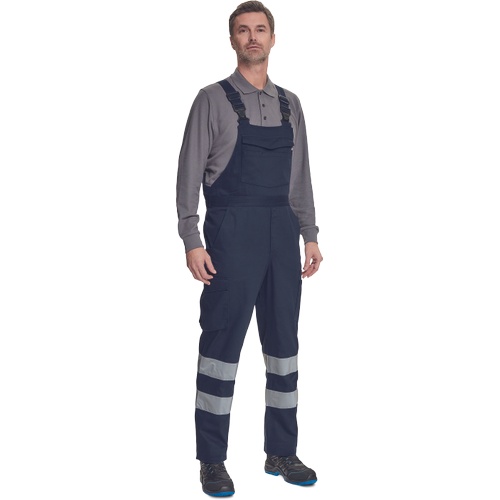 Opis: • męskie w pełni ostrzegawcze ogrodniczki robocze z taśmami odblaskowymi o szerokości 7 cm • wykonane z unikalnego i lekkiego materiału Lumicotex • 2 boczne kieszenie i 1 kieszeń na monety • 2 boczne wielofunkcyjne kieszenie na nogawkach, 2 kieszenie z tyłu i 1 duża wielofunkcyjna przednia kieszeń • elastyczne szelki z plastikowymi klamrami • możliwość wydłużenia nogawek