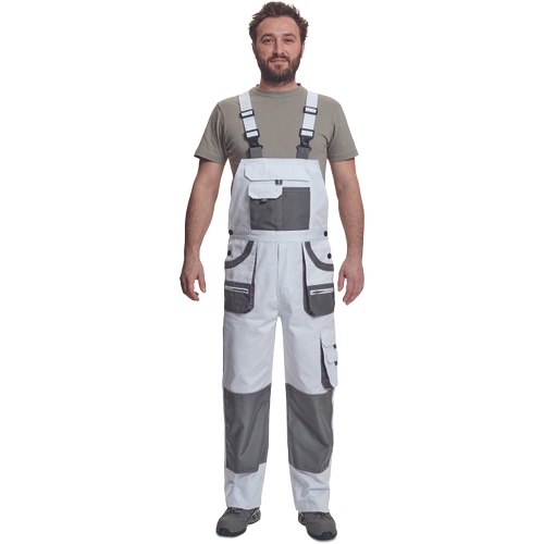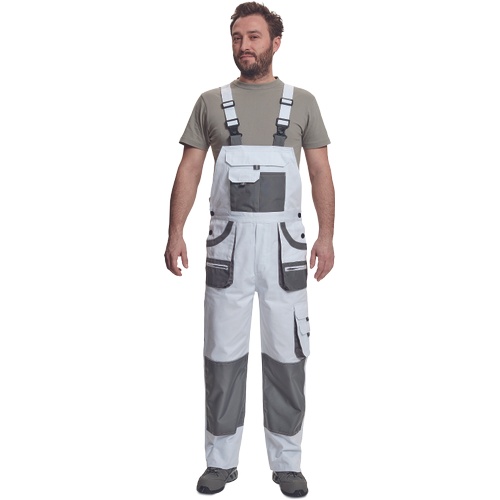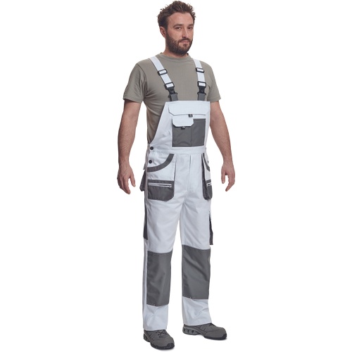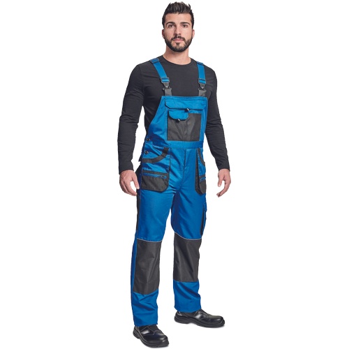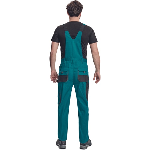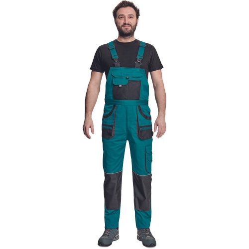 Opis: spodnie robocze ogrodniczki z praktycznymi, wielofunkcyjnymi kieszeniami wzmacniane na kolanach; posiadają kieszenie na ochraniacze kolan