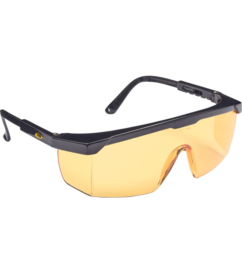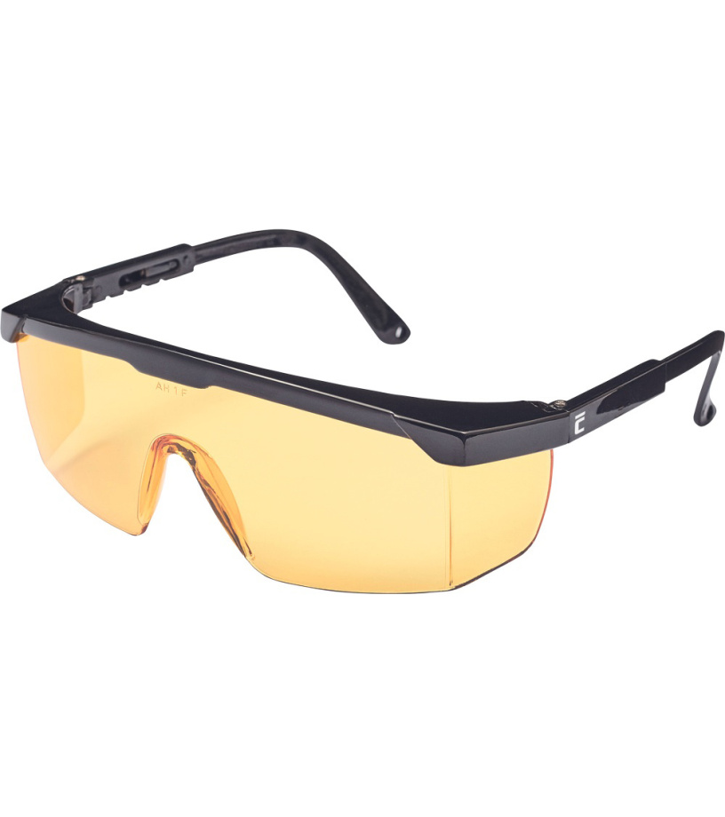 Okulary ochronne wykonane z poliwęglanu • klasa 1F zgodnie z normą EN 166 • soczewki zabezpieczone ochronną powłoka przeciwko zarysowaniom i zaparowaniu • odporne na cząsteczki o niskiej energii uderzenia • regulacja zauszników • soczewki w kolorze żółtym zabezpieczają przed promieniowaniem UV zgodnie z normą EN 170. Soczewki przydymione chronią przed olśnieniem zgodnie z normą EN 172.