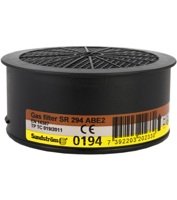 Opis: Pochłaniacze SR 294, klasa 2 przeznaczone są do stosowania w maskach i półmaskach Sundström. Oba pochłaniacze (typ ABE) chronią przed następującymi gazami i oparami: Typ A chroni przed gazami i oparami organicznymi, np. rozpuszczalniki o temp. wrzenia pow. +65 °C. Typ B chroni przed gazami i oparami nieorganicznymi, np. chlor, siarkowodór i cyjanowodór. Typ E chroni przed kwaśnymi gazami i oparami, np. dwutlenek siarki i fluorowodór. Pochłaniacz można w prosty sposób połączyć z filtrem przeciwpyłowym SR 510 P3 R, dzięki czemu uzyskuje się dodatkową ochronę przed cząstkami i aerozolami, np. przy lakierowaniu natryskowym.