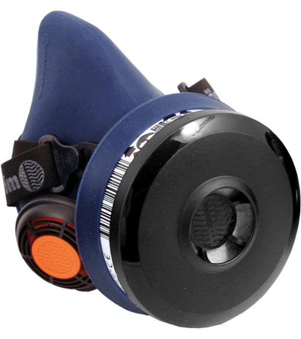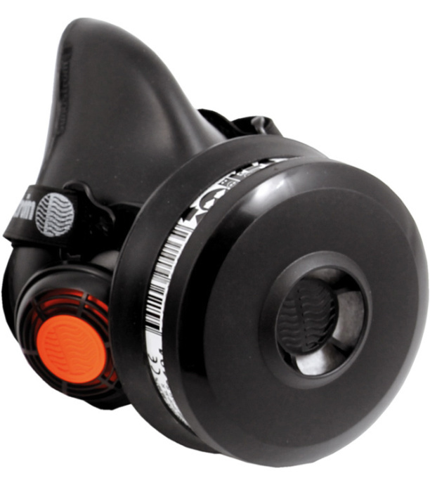 Opis: Półmaska SR 100 wykonana jest z silikonu. Dostępna w rozmiarach S/M, M/L i L/XL. Wyposażona w 2 zawory wydechowe, charakteryzujące się niezwykle niskimi oporami przy wydechu. Perforowane osłony zaworów stanowią skuteczną ochronę membran wydechowych przed pyłami i aerozolami. Tworzywo oraz barwniki stosowane w masce dopuszczone są do kontaktu z żywnością (FDA i BGA), więc zachodzi tylko minimalne ryzyko alergii kontaktowych. Łatwe do regulacji paski tworzą mocowanie w kształcie litery V, a szerokie nagłowie zapewnia wygodne i pewne dopasowanie. Do półmaski stosuje się filtry i pochłaniacze. Można też podłączyć ją do aparatu sprężonego powietrza SR 307. Maska wyposażona jest dodatkowo w uchwyt filtra wstępnego. Maskę najlepiej przechowywać w pudełku SR 230 lub w torbie SR 339.