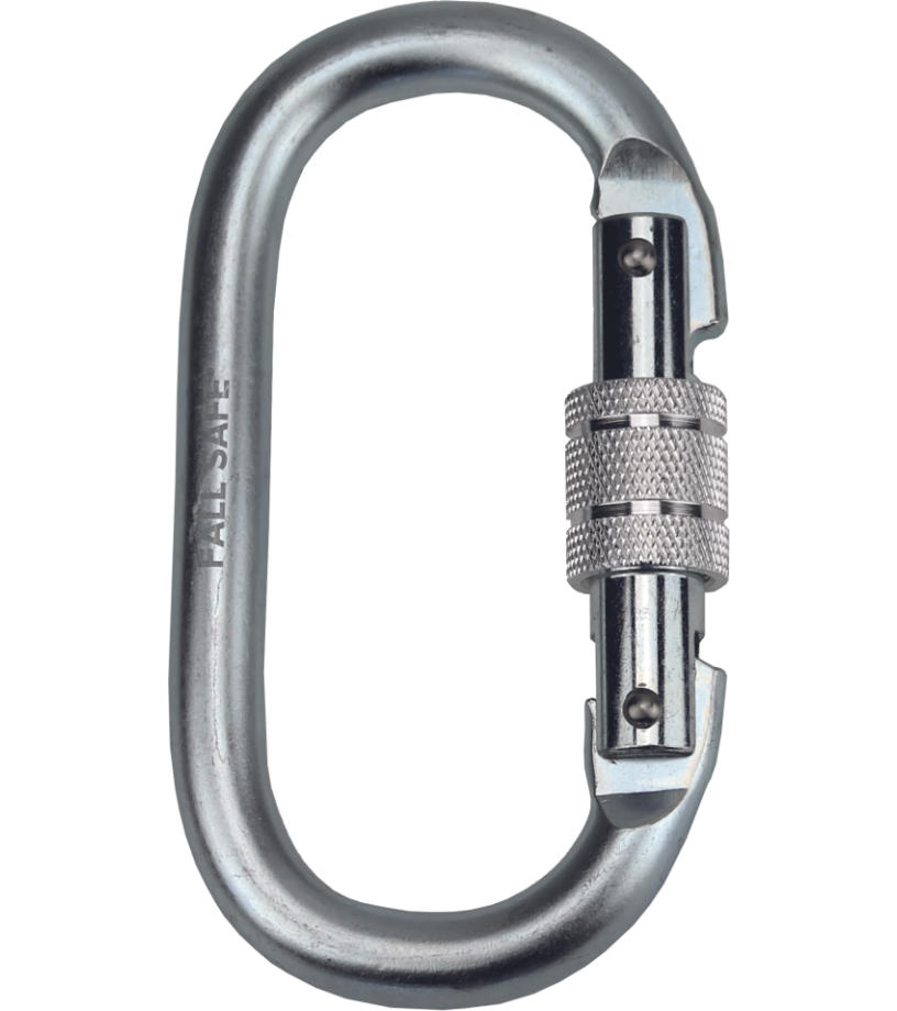 Karabinek owalny Cerva ze stali z blokadą śrubową Dane techniczne: Wytrzymałość: 25 kN Otwór: 18 mm Materiał: Stal Wymiary: 59 x 110 mm CE EN362-B EN12275-H
