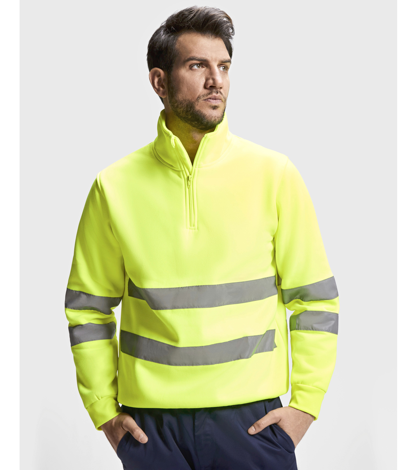 Bluza o wysokiej widoczności z półzamkiem, wysokim kołnierzem, ochroną podbródka i ściągaczem na zamekCzesana podszewka