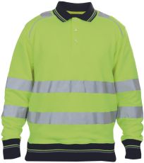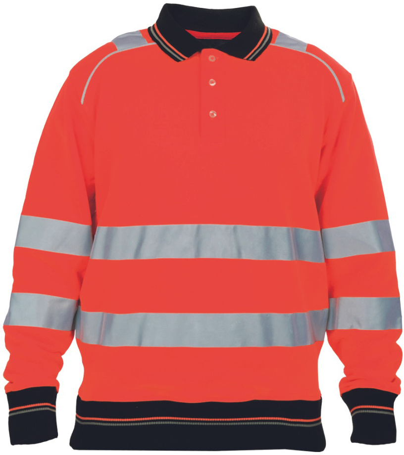 Opis: męska bluza polo Hi-Vis z okrągłym dekoltem wykonana z bawełn; szczotkowana tkanina frotte od wewnątrz; zapięcie na 3 guziki; kontrastowe paski na kołnierzu, rękawach i na dole bluzy; ozdobne przeszycia w kolorze Hi-Vis