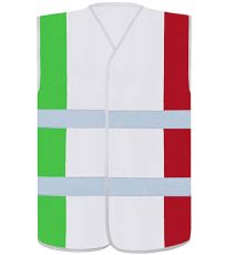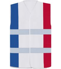 Optymalna widoczność dzięki dwóm odblaskowym paskom i żywym kolorom odpowiednich flag narodowych