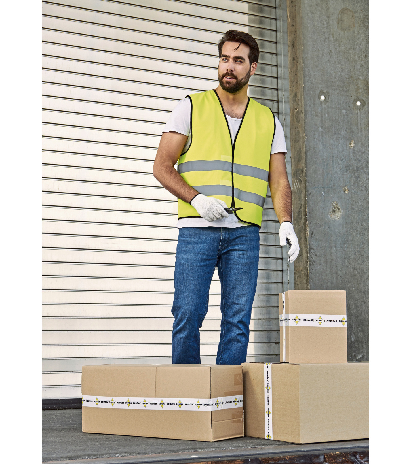 Wysokiej jakości standardowa kamizelka bezpieczeństwa Korntex® z czarnymi szwami w stylu KorntexCertyfikat zgodnie z normą EN ISO 20471:2013 + A1:2016