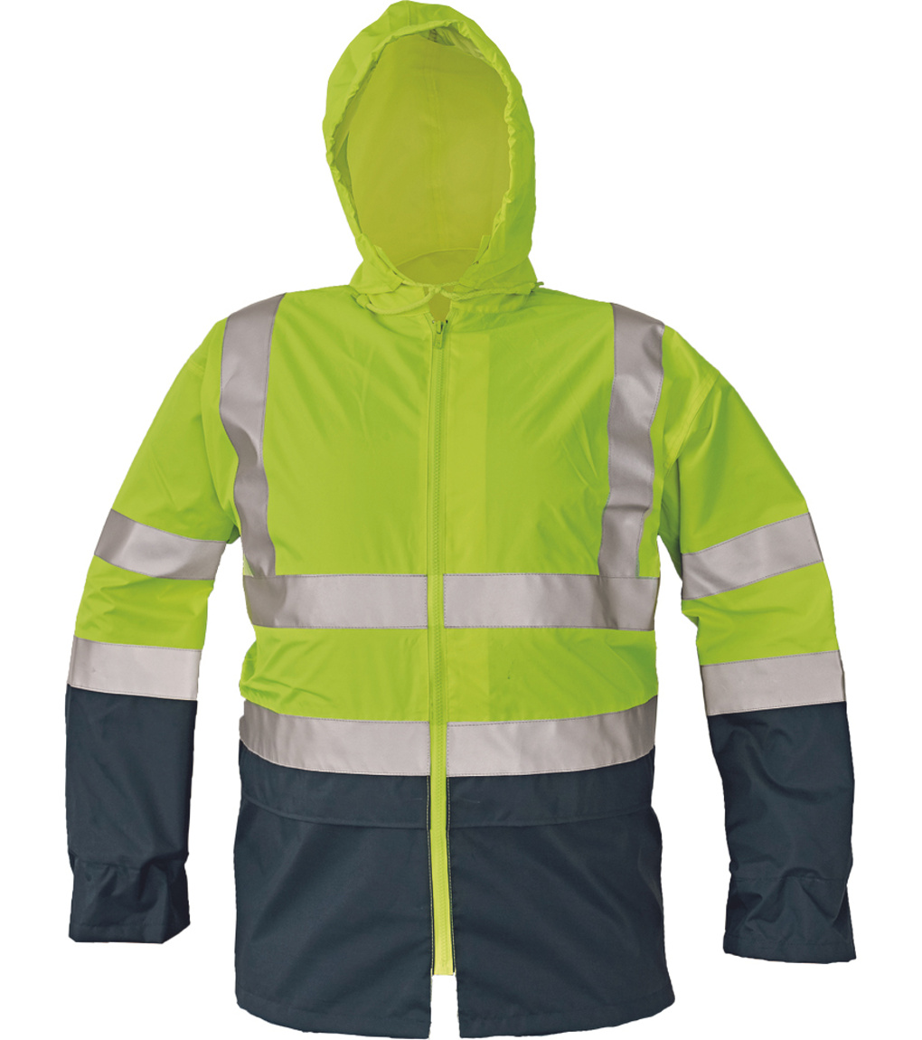 Opis: • kurtka Hi-Vis bez podszewki • klejone szwy • wodoodporność klasa 3 zgodnie z nomą EN 343, paroprzepuszczalność klasa 1 zgodnie z normą EN 343 • taśmy odblaskowe 3M • kaptur w kołnierzu • możliwość regulacji u dołu za pomocą sznurka