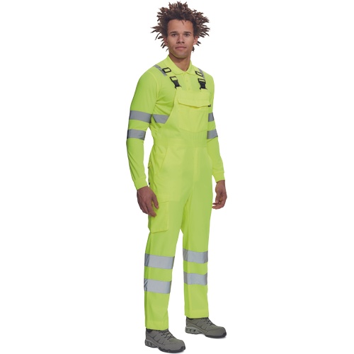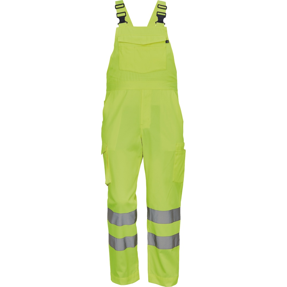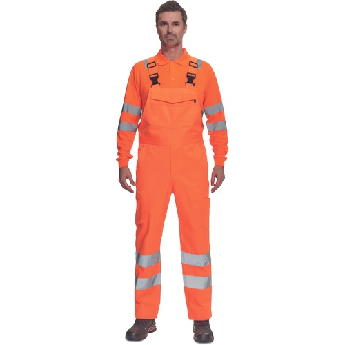 Opis: • męskie w pełni ostrzegawcze ogrodniczki robocze z taśmami odblaskowymi o szerokości 7 cm • wykonane z unikalnego i lekkiego materiału Lumicotex • 2 boczne kieszenie i 1 kieszeń na monety • 2 boczne wielofunkcyjne kieszenie na nogawkach, 2 kieszenie z tyłu i 1 duża wielofunkcyjna przednia kieszeń • elastyczne szelki z plastikowymi klamrami • możliwość wydłużenia nogawek