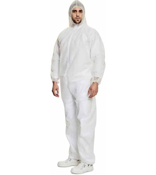 Opis: jednorazowy kombinezon ochronny z kapturem