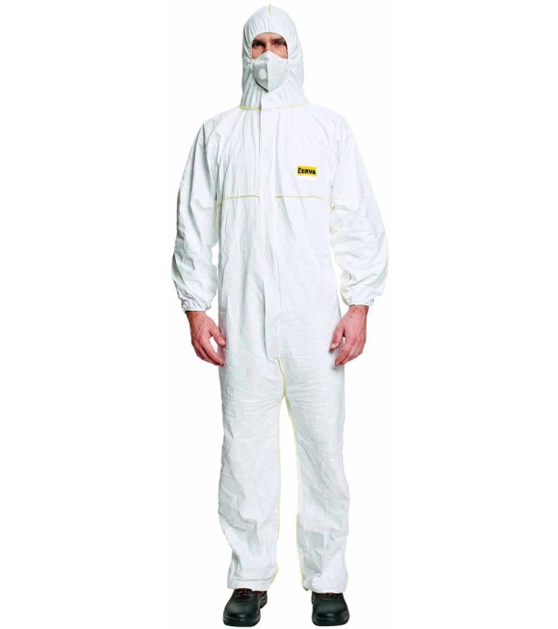 Opis: PRZYKŁADY ZASTOSOWAŃ: model kombinezonu CERVA DuPont CHF5CB został zaprojektowany, by chronić użytkowników przed niebezpiecznymi substancjachemicznymi, a także by chronić procesy technologiczne i produkty przed zanieczyszczeniem przez człowieka, w zależności od chemicznej toksyczności i warunków narażenia. Ochrona przed pyłami unoszącymi się w powietrzu (Typ 5) oraz przed mgłą substancji chemicznej (Typ 6).