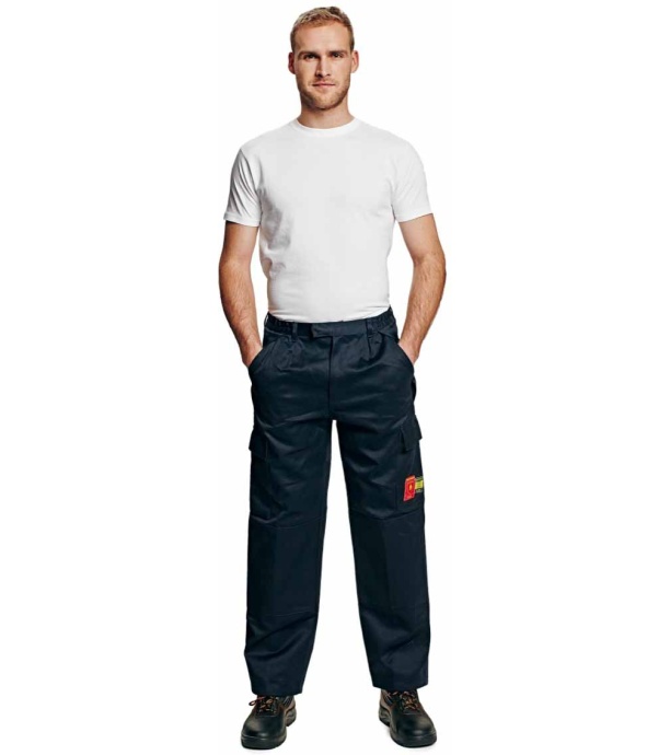 Opis: • spodnie ze szluwkami • dwie przykryte kieszenie wewnętrzne • naszywana jedna kieszeń tylna oraz dwie boczne przykryte patkami • zapięcie na rzep • wzmocnione w okolicach kolan oraz siedziska