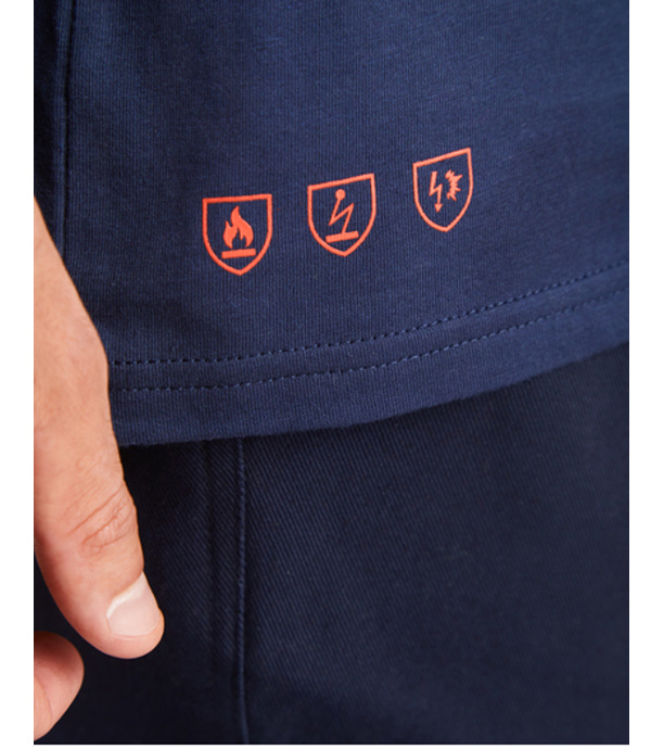 60% modakryl / 37% bawełna / 3% włókno węglowe, jersey o pojedynczym splocieT-shirt z długim rękawem, wykonany z materiału odpornego na ogień
