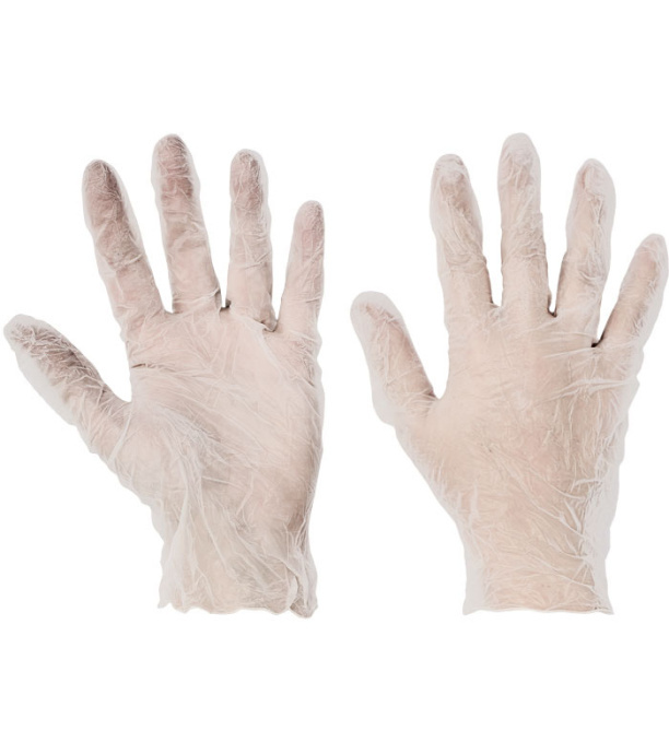 Opis: Jednorazowe, niepudrowane rękawice winylowe, odpowiednie do krótkotrwałego kontaktu z niezawierającymi tłuszczu produktami spożywczymi