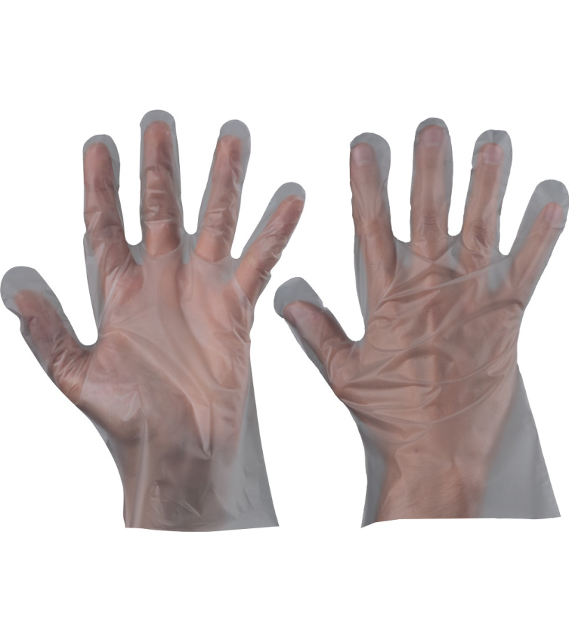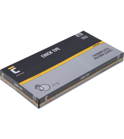 Jednorazowe rękawice niepudrowane wykonane z elastomeru termoplastycznego (TPE) będące rozwinięciem rękawic polietylenowych. Nadaje się do krótkotrwałego kontaktu z żywnością. 100 szt.