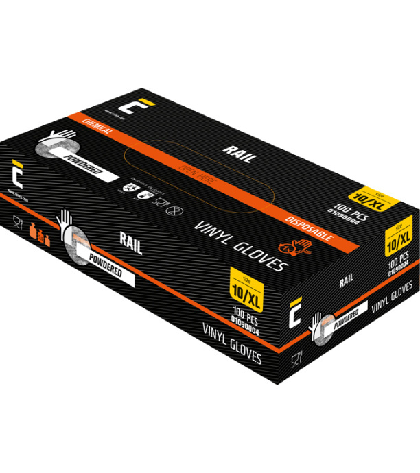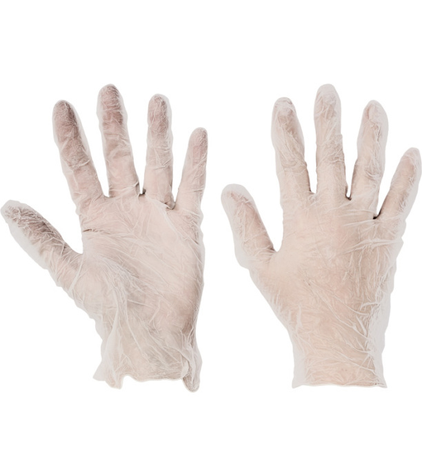 Rękawice jednorazowe winylowe, pudrowane, nadające się do krótkotrwałego kontaktu z produktami spożywczymi bez zawartości tłuszczu.