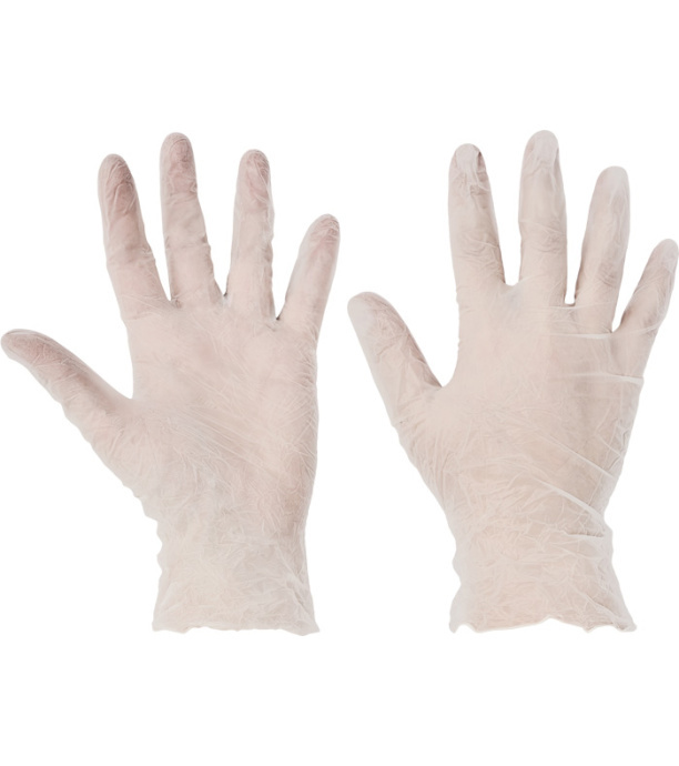 Rękawice jednorazowe winylowe, bezpudrowe, nadające się do krótkotrwałego kontaktu z produktami spożywczymi bez zawartości tłuszczu.