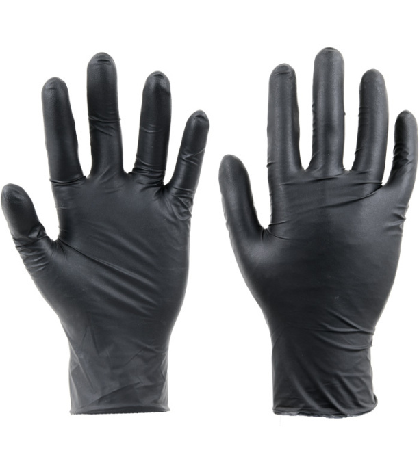 Jednorazowe nitrylowe rękawice. Niepudrowane. Certyfikowane do bezpośredniego kontaktu z tłustą żywnością.