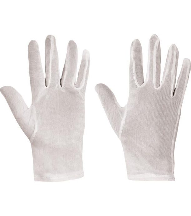 Rękawice szyte z delikatnej, nylonowej dzianiny, zgodnie z fasonem "fourchette", bez mankietu.