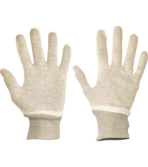 Rękawice szyte z delikatnej, bawełnianej dzianiny, z elastycznym mankietem.